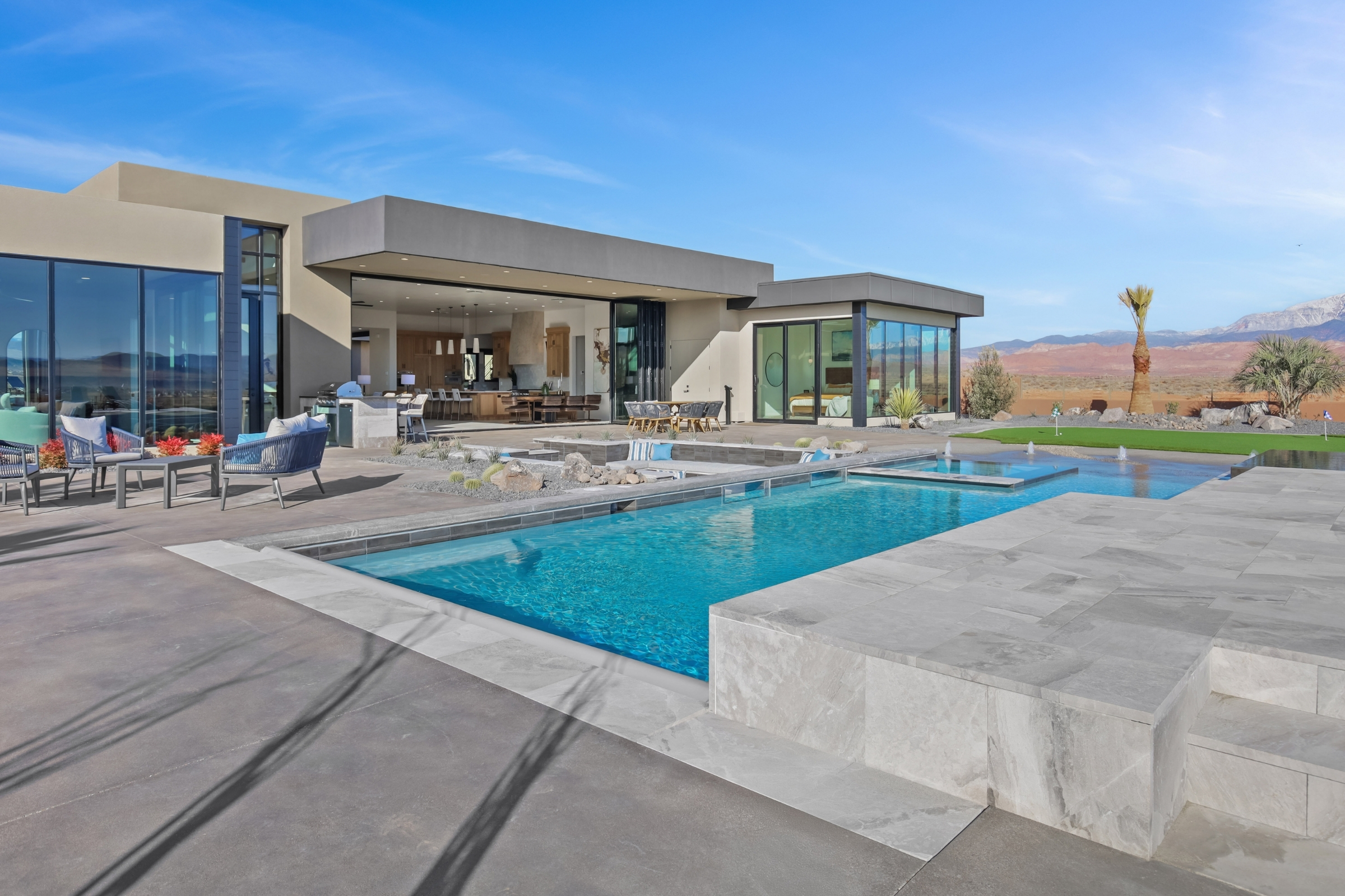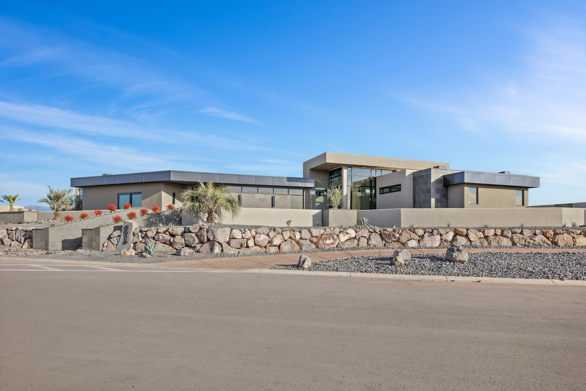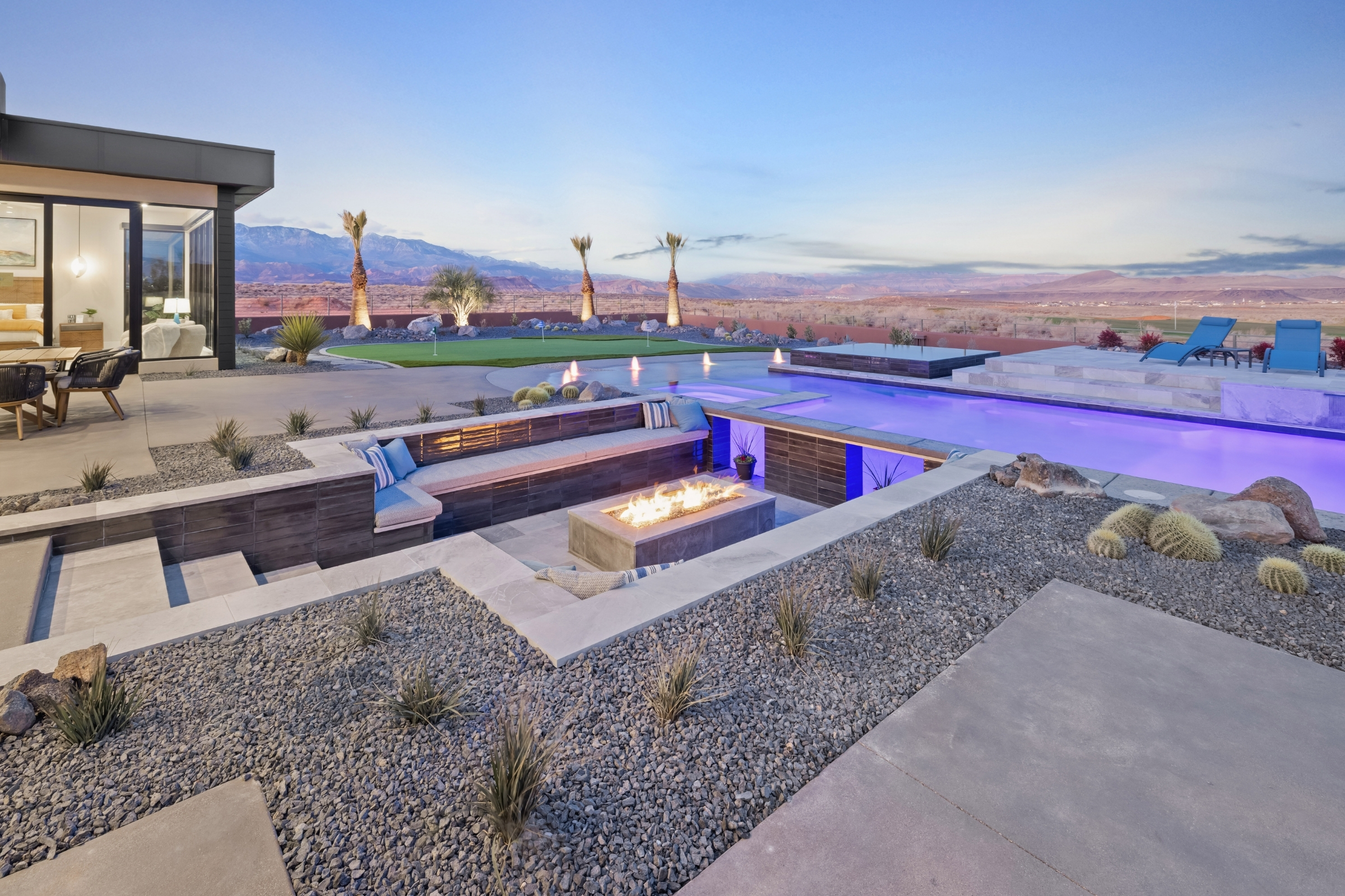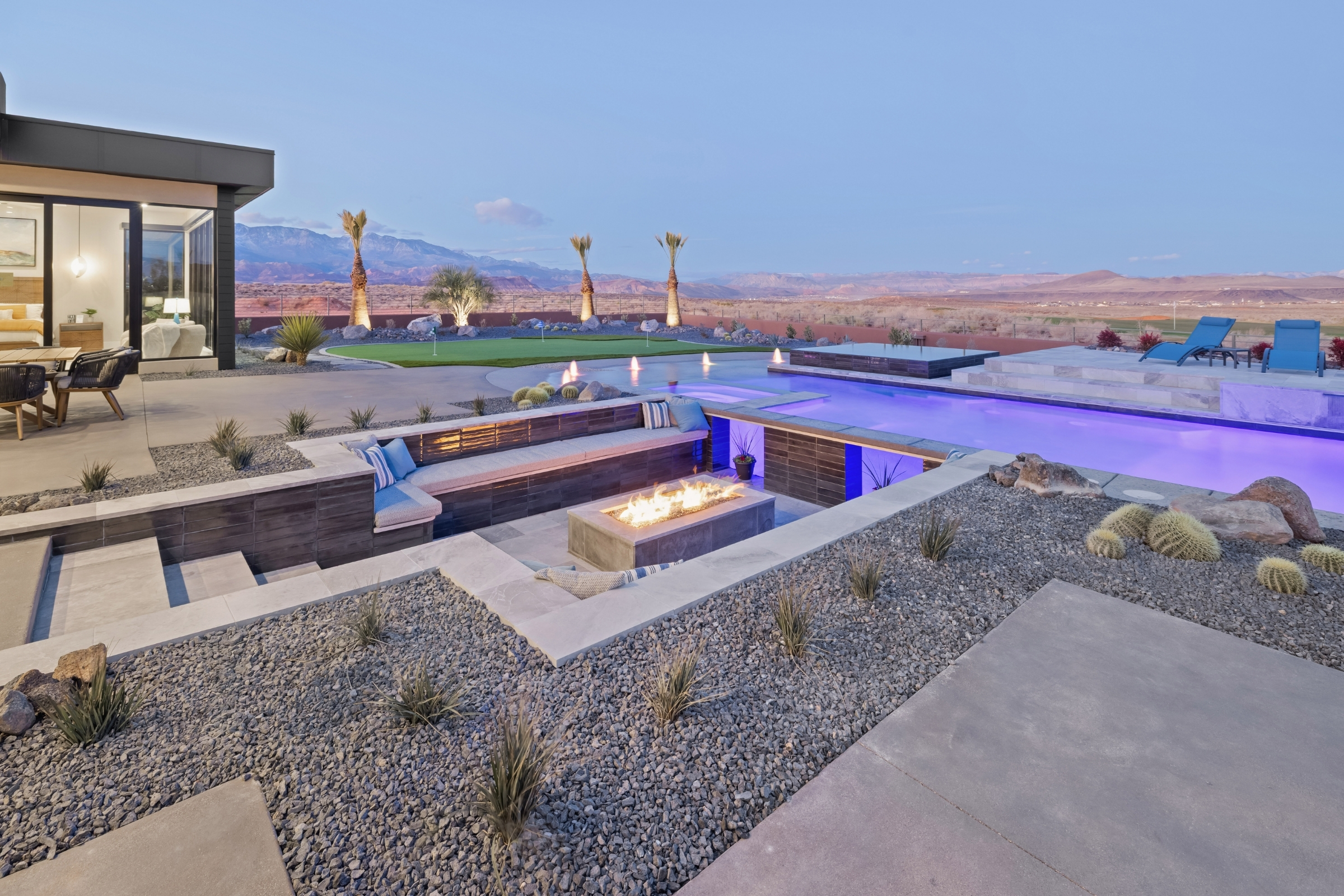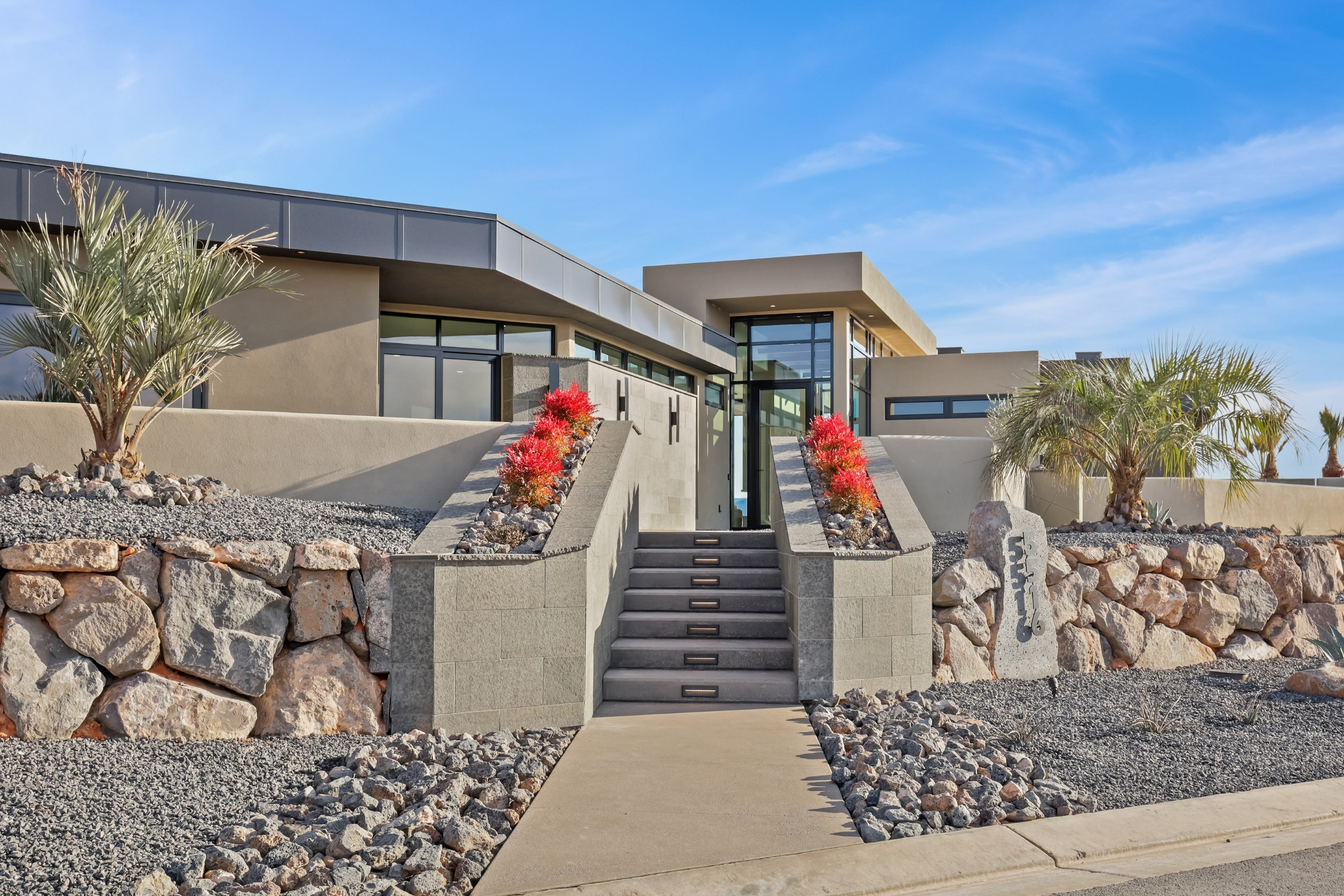 Set along the pristine fairways of the Sand Hollow Golf Course, The Solithria is a modern sanctuary designed to embody stillness, balance, and refined living. This one-level custom home is an intentional study in calm—where architecture, landscape, and light work together to create a deeply peaceful living experience.