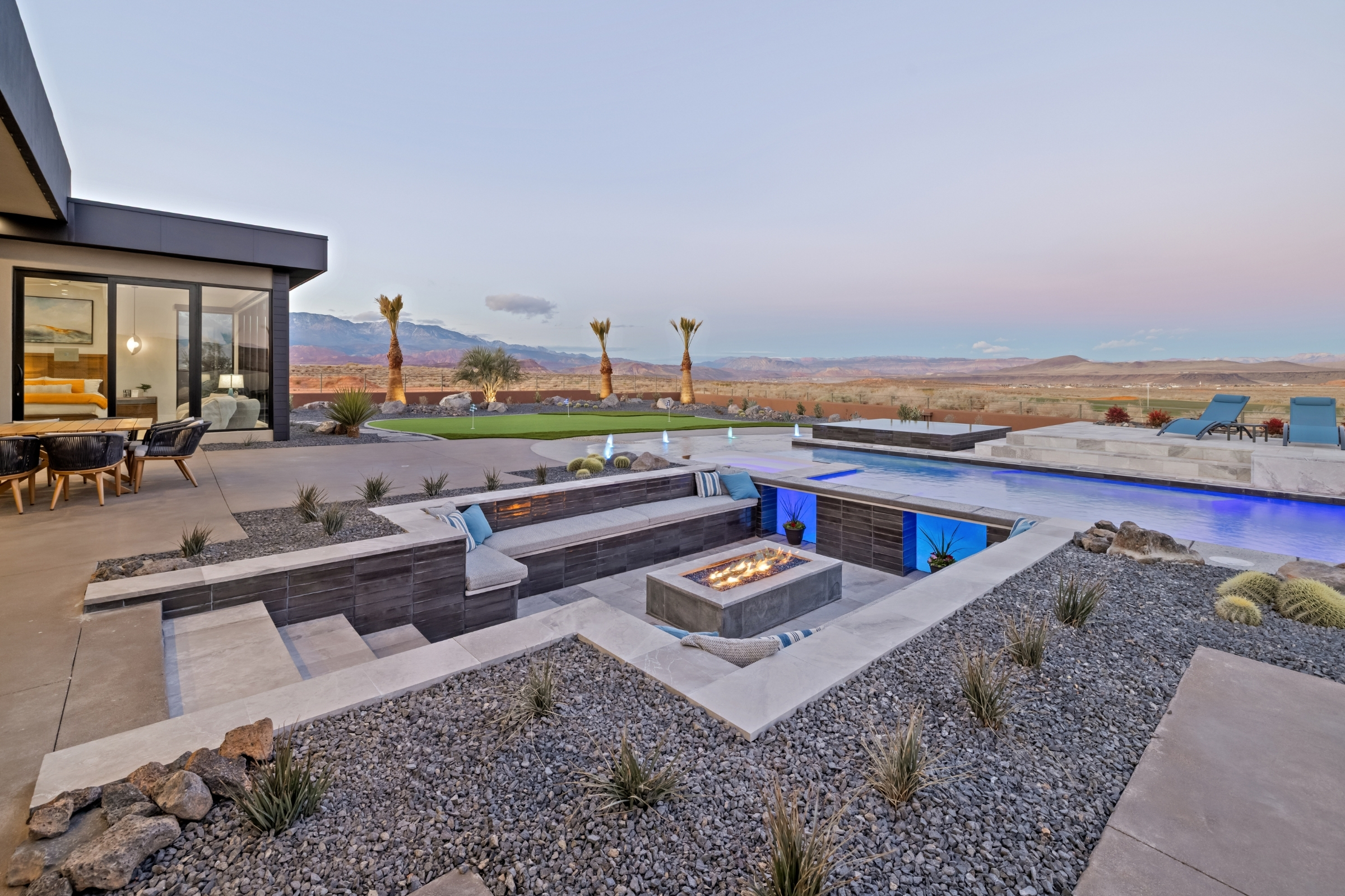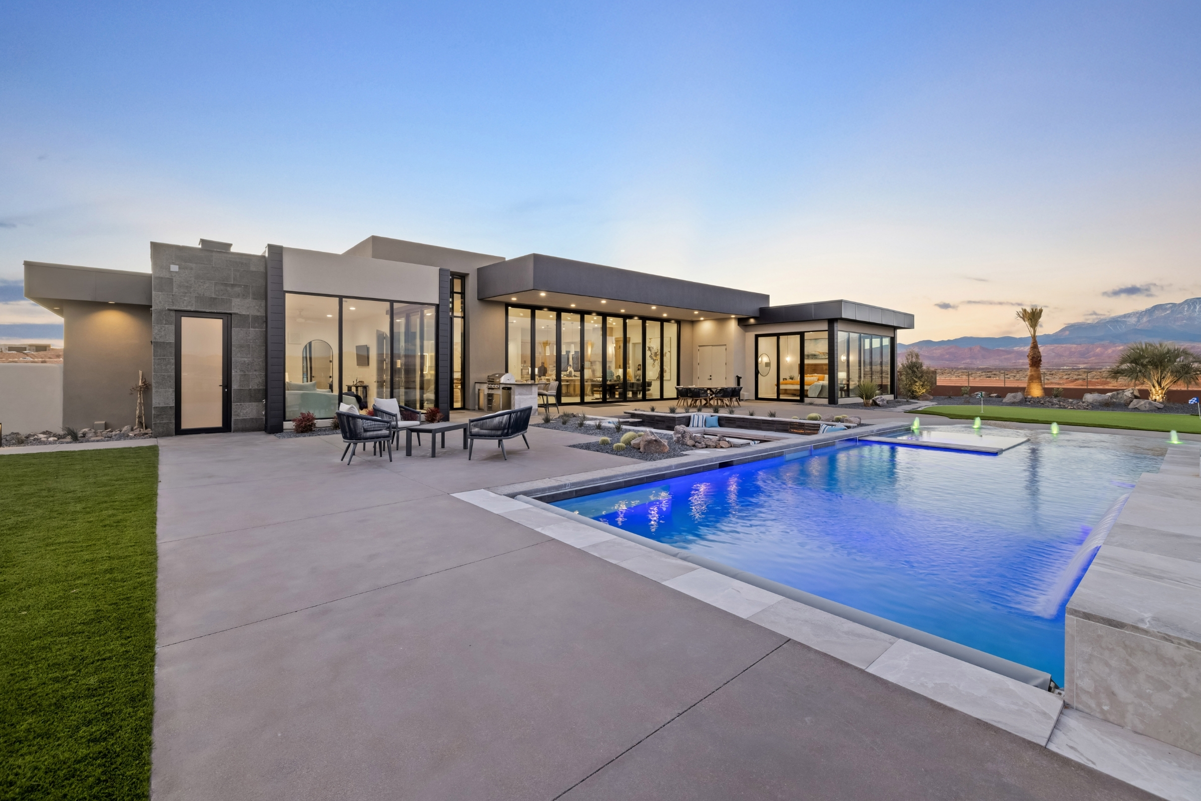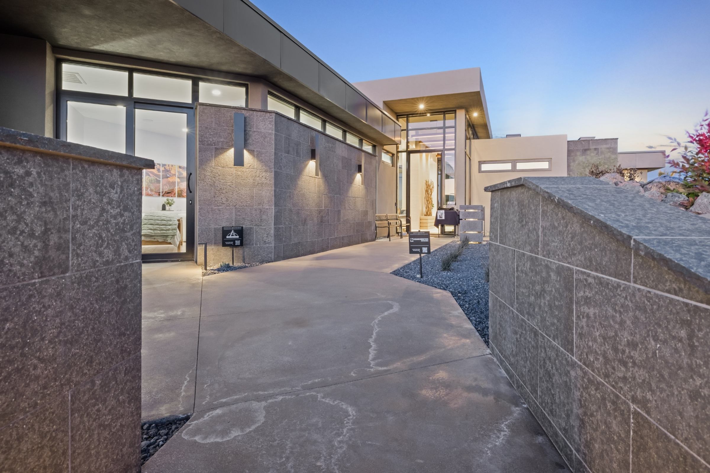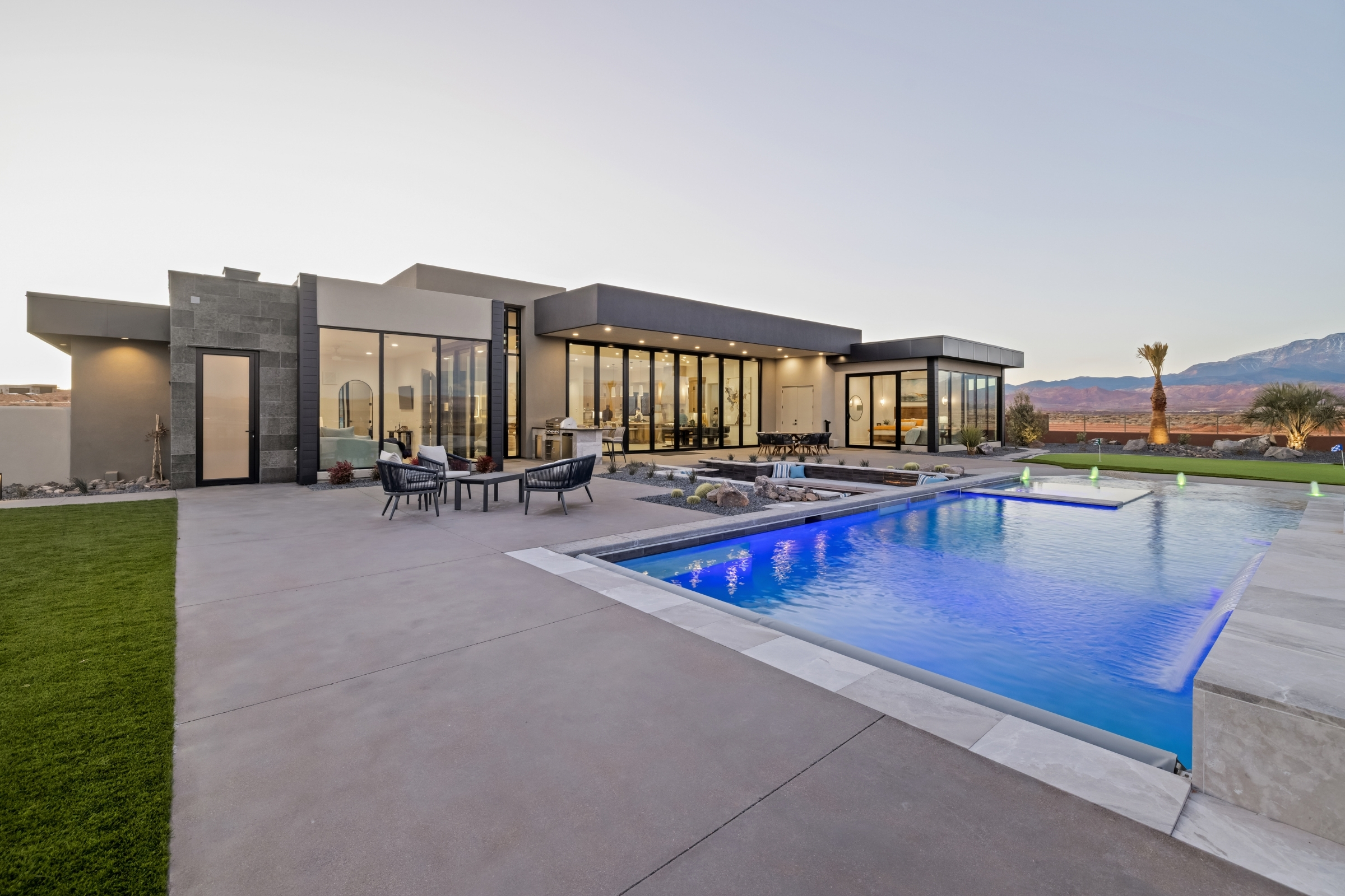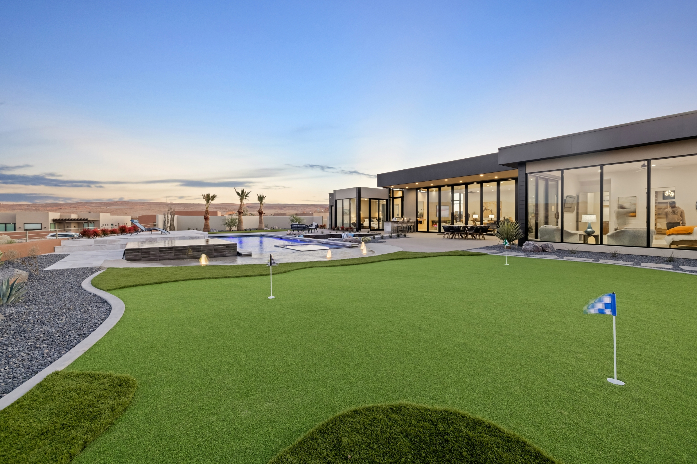 Set along the pristine fairways of the Sand Hollow Golf Course, The Solithria is a modern sanctuary designed to embody stillness, balance, and refined living. This one-level custom home is an intentional study in calm—where architecture, landscape, and light work together to create a deeply peaceful living experience.