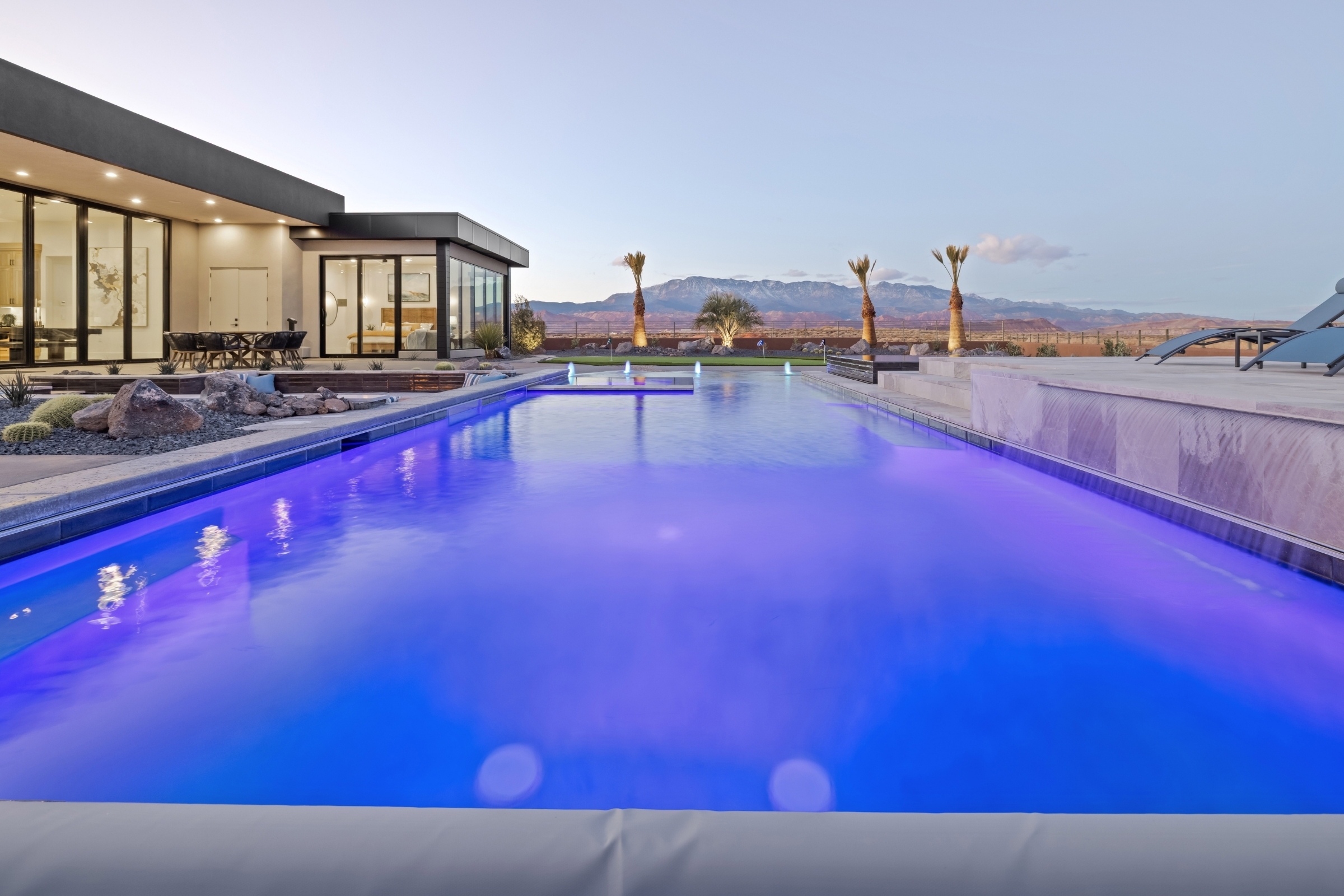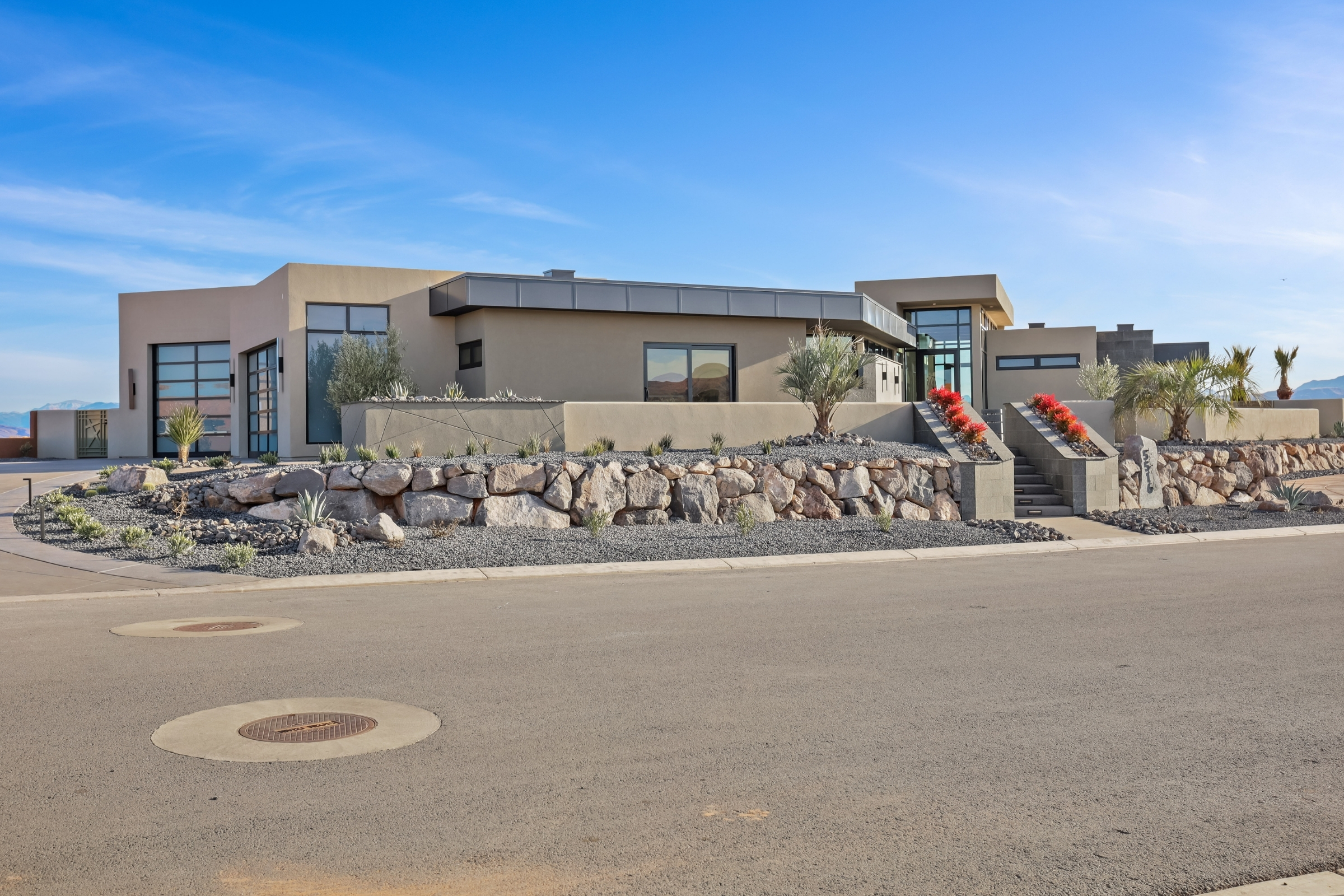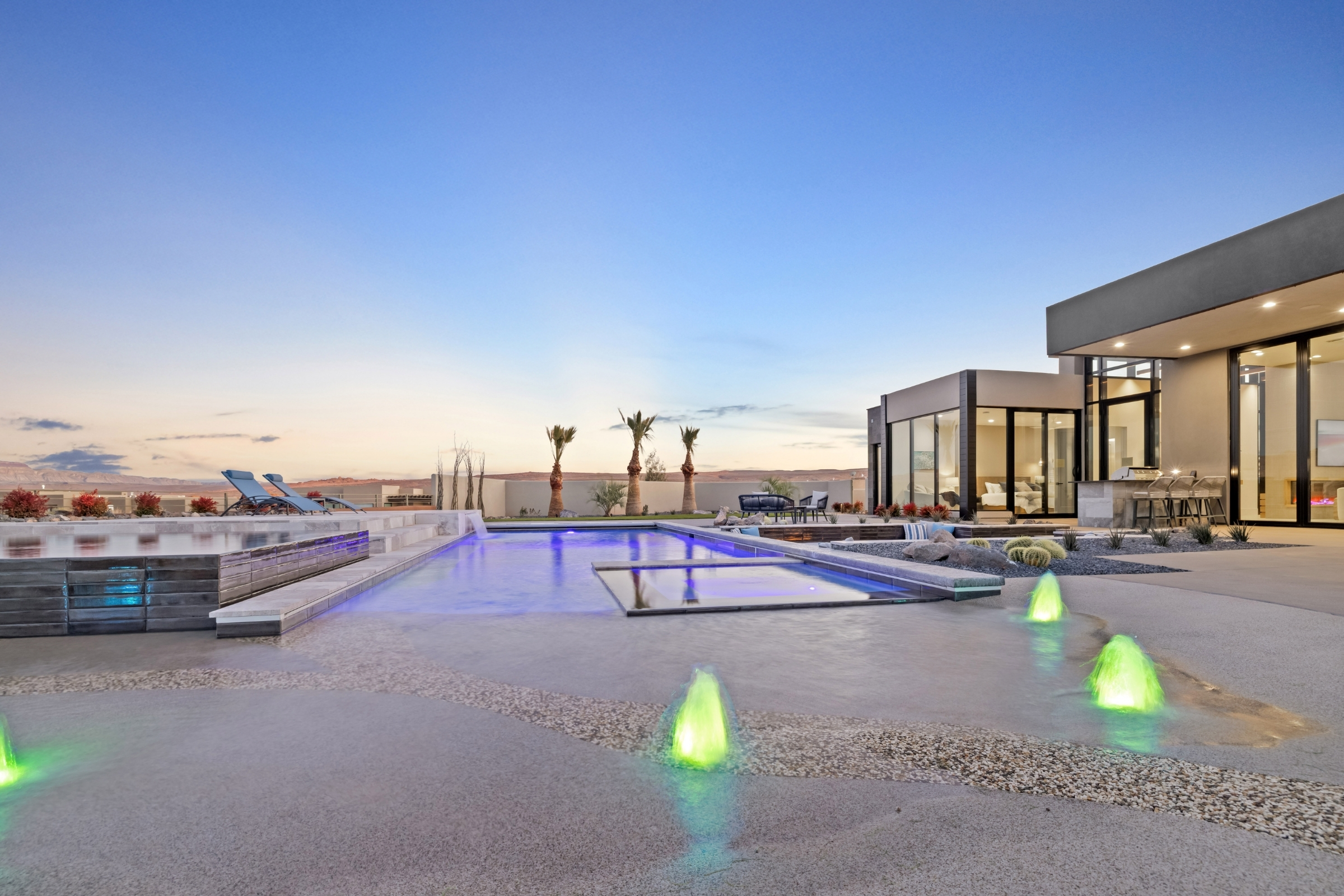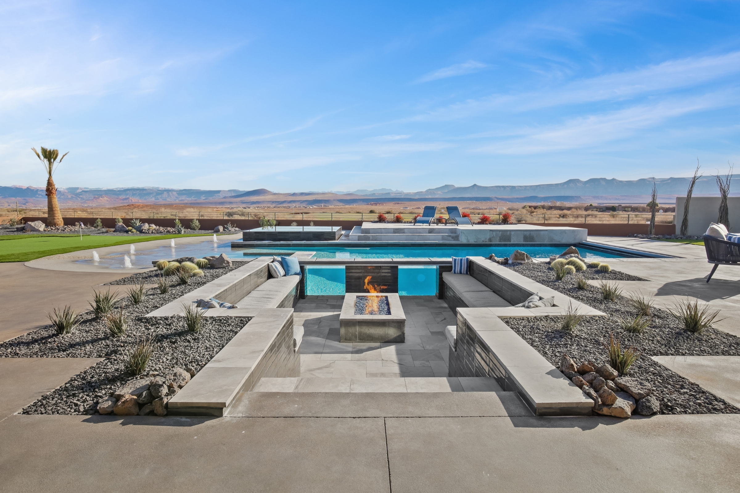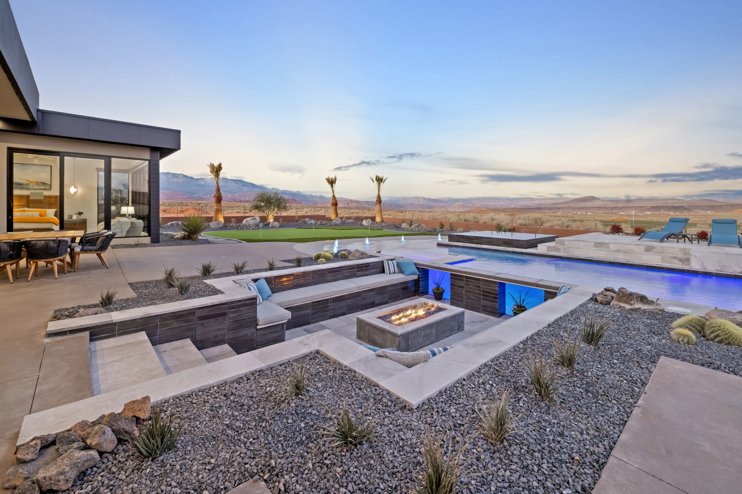 Set along the pristine fairways of the Sand Hollow Golf Course, The Solithria is a modern sanctuary designed to embody stillness, balance, and refined living. This one-level custom home is an intentional study in calm—where architecture, landscape, and light work together to create a deeply peaceful living experience.