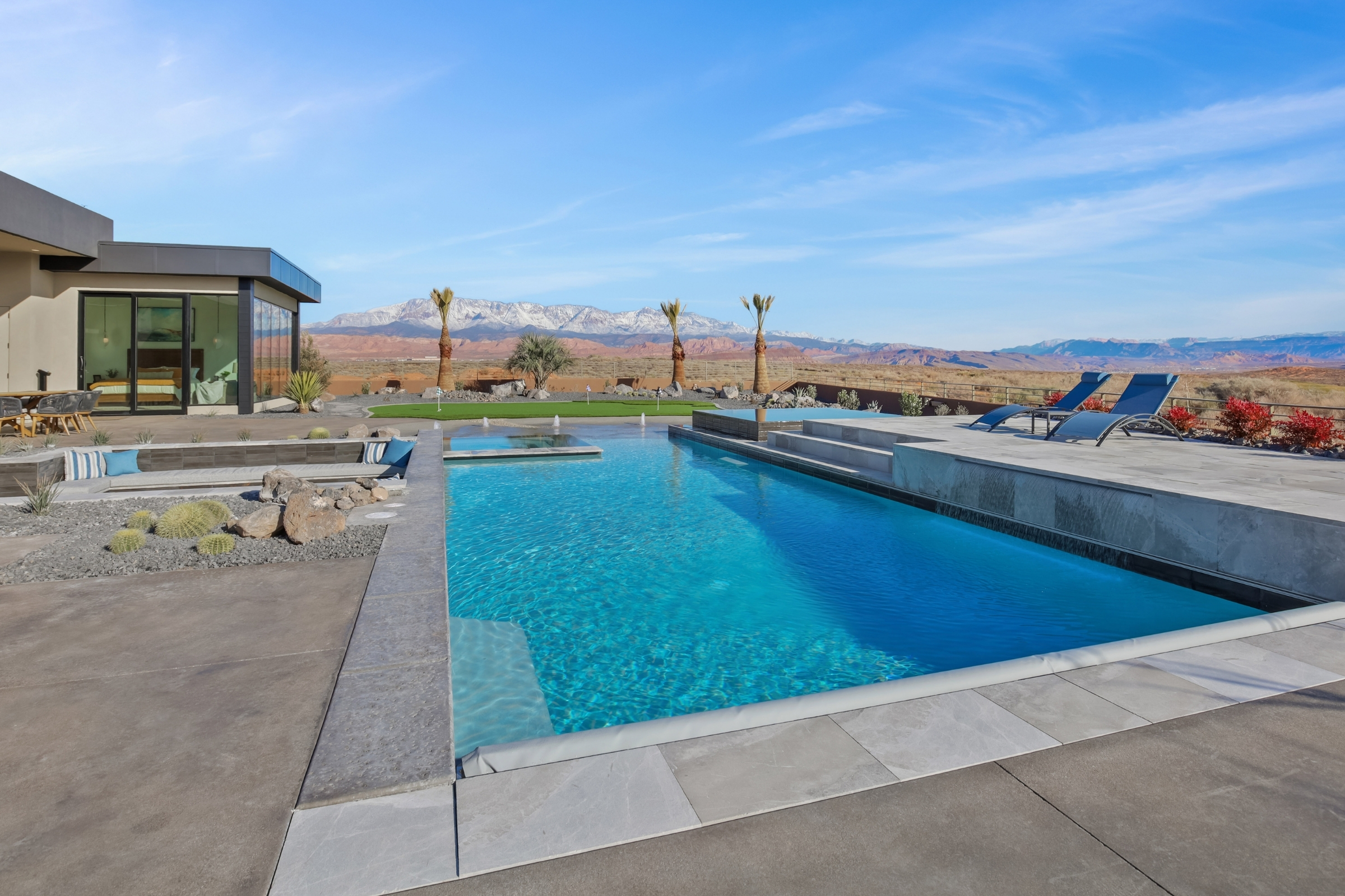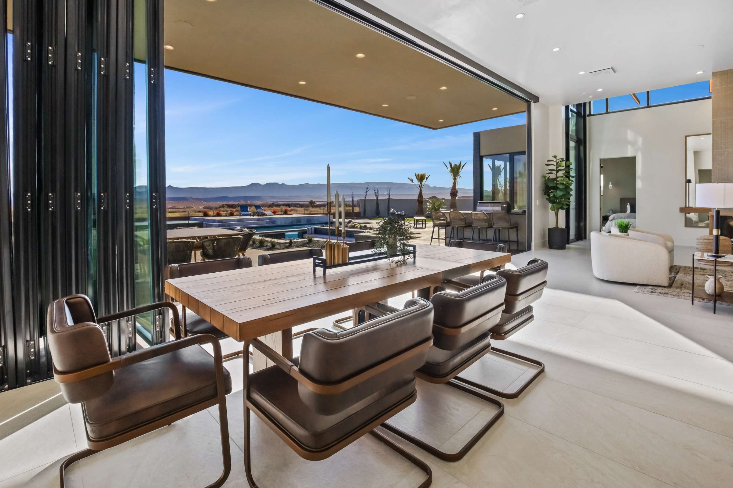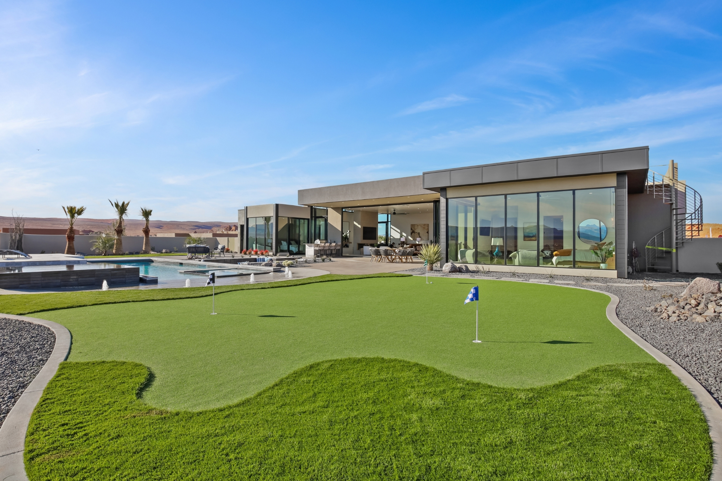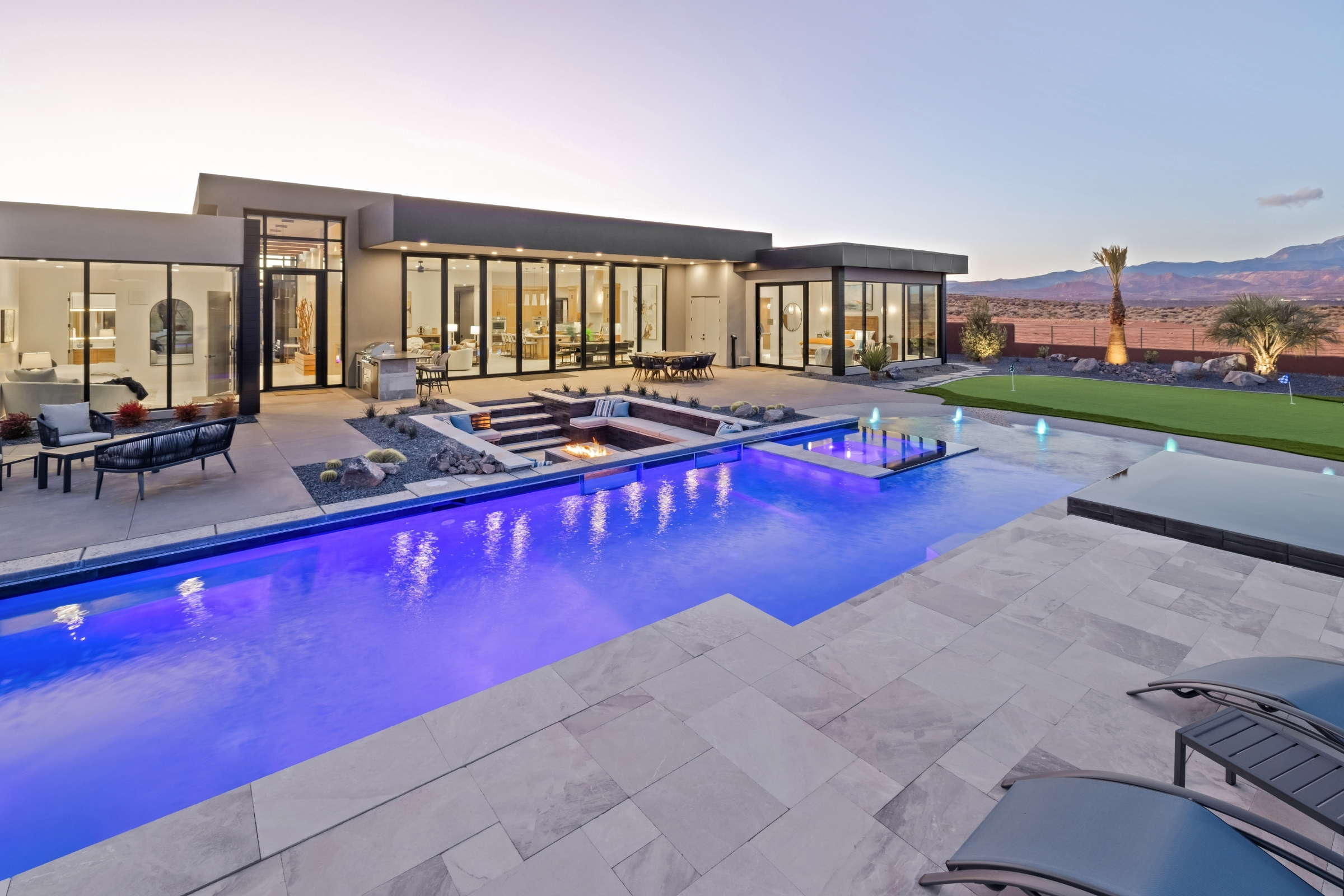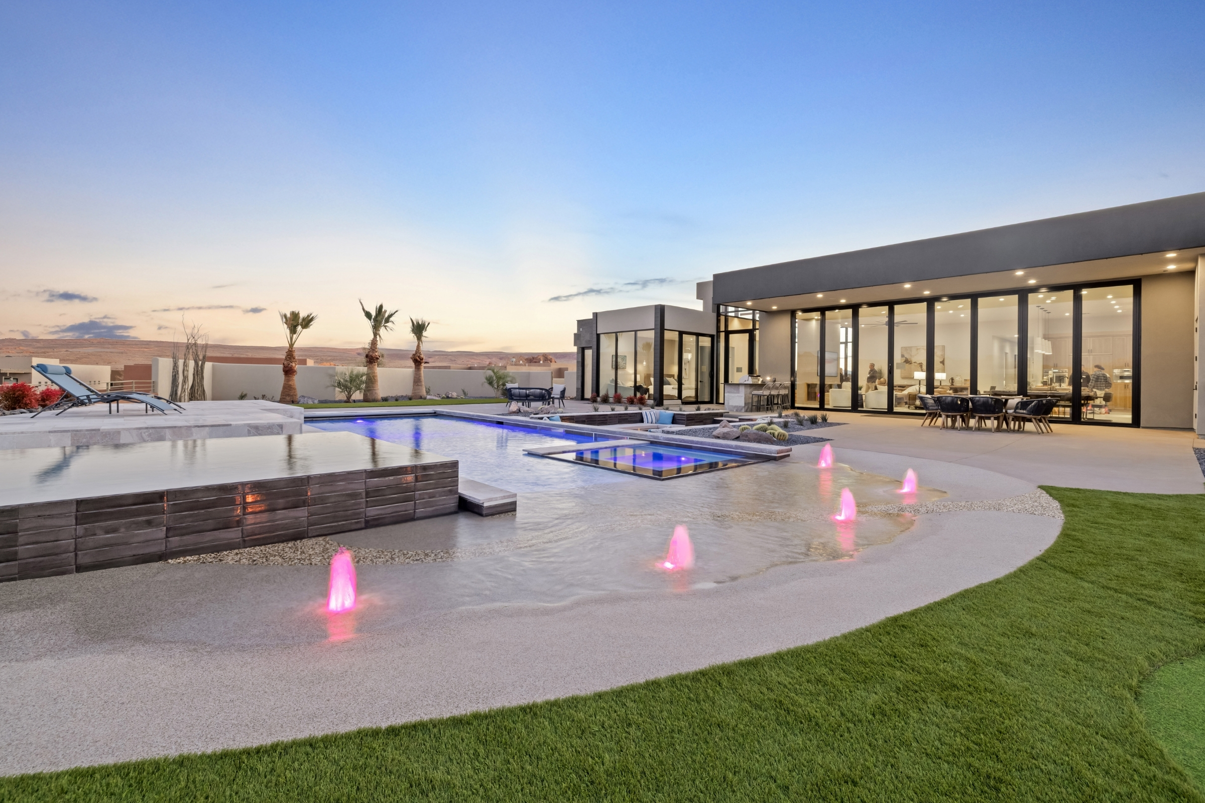 Set along the pristine fairways of the Sand Hollow Golf Course, The Solithria is a modern sanctuary designed to embody stillness, balance, and refined living. This one-level custom home is an intentional study in calm—where architecture, landscape, and light work together to create a deeply peaceful living experience.