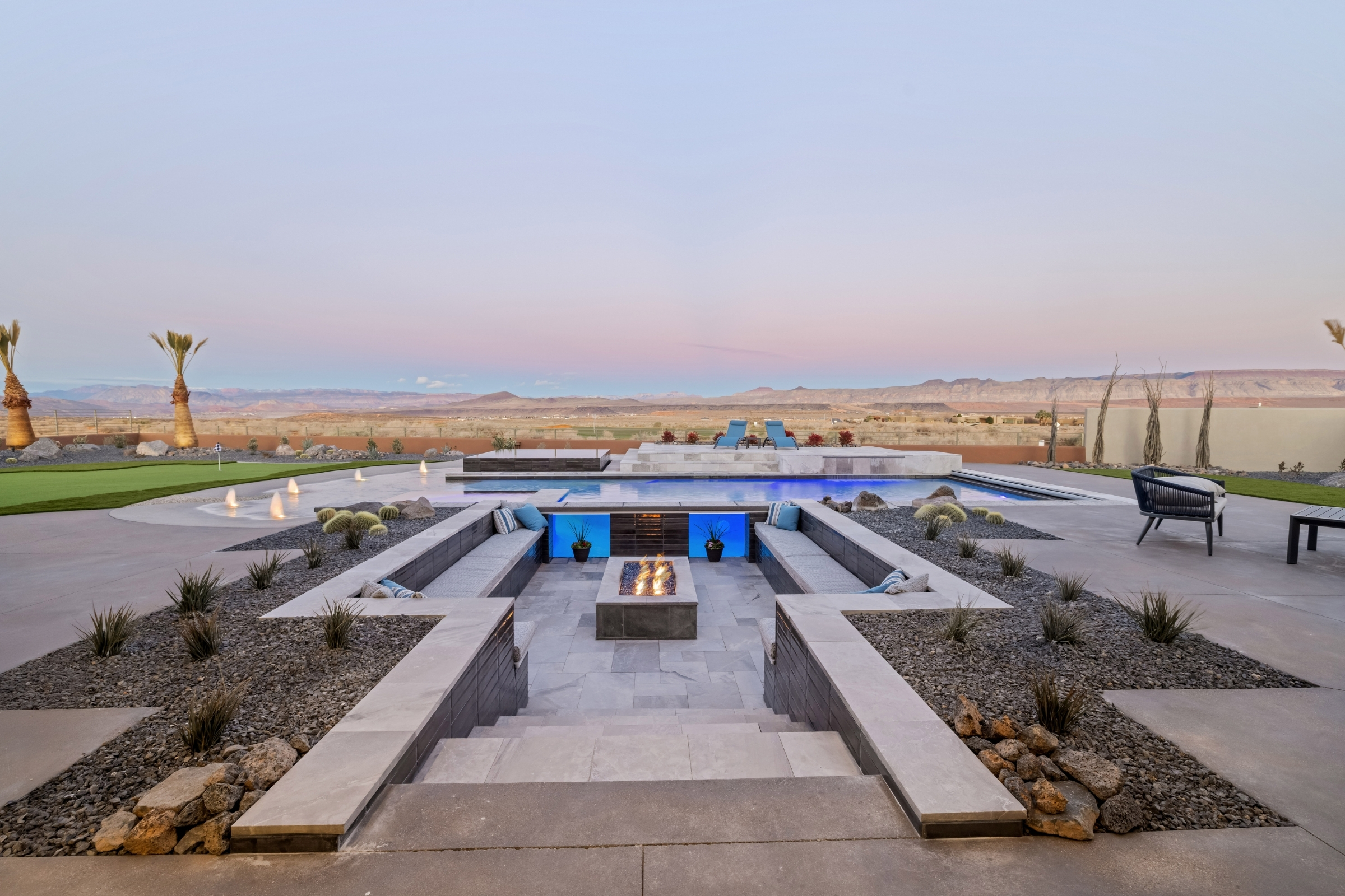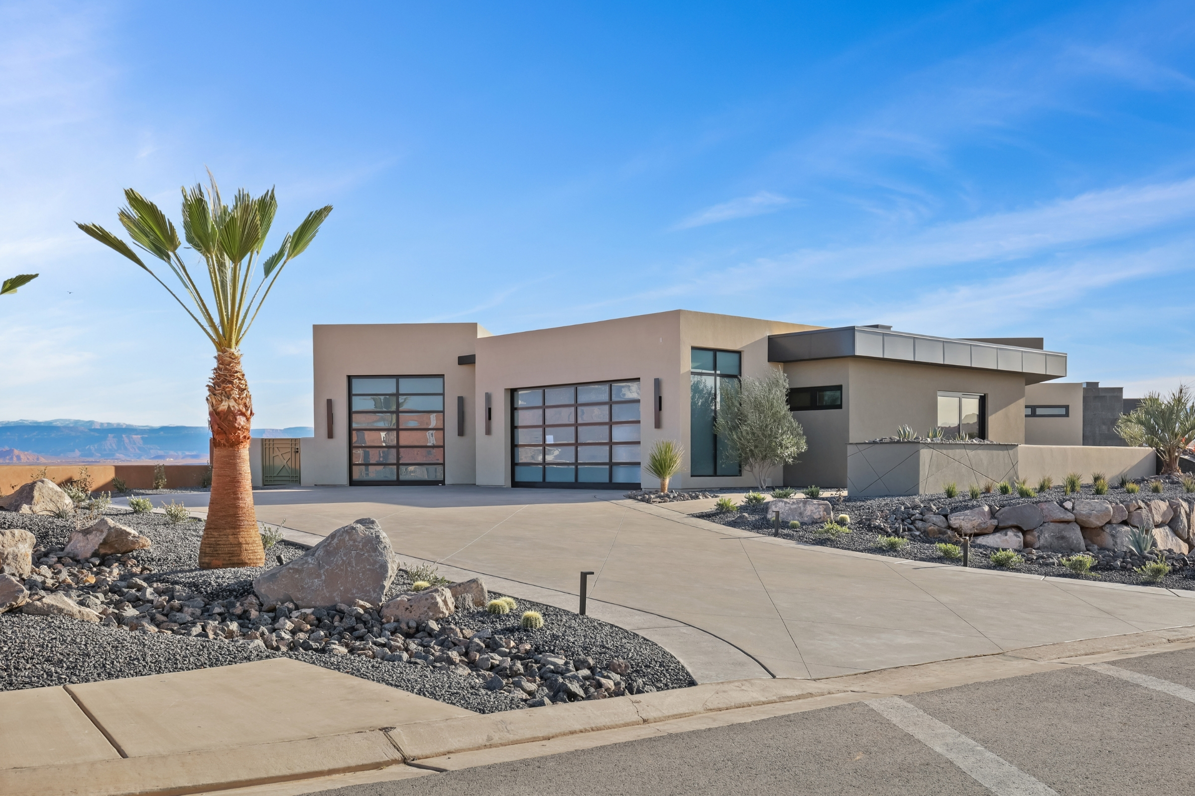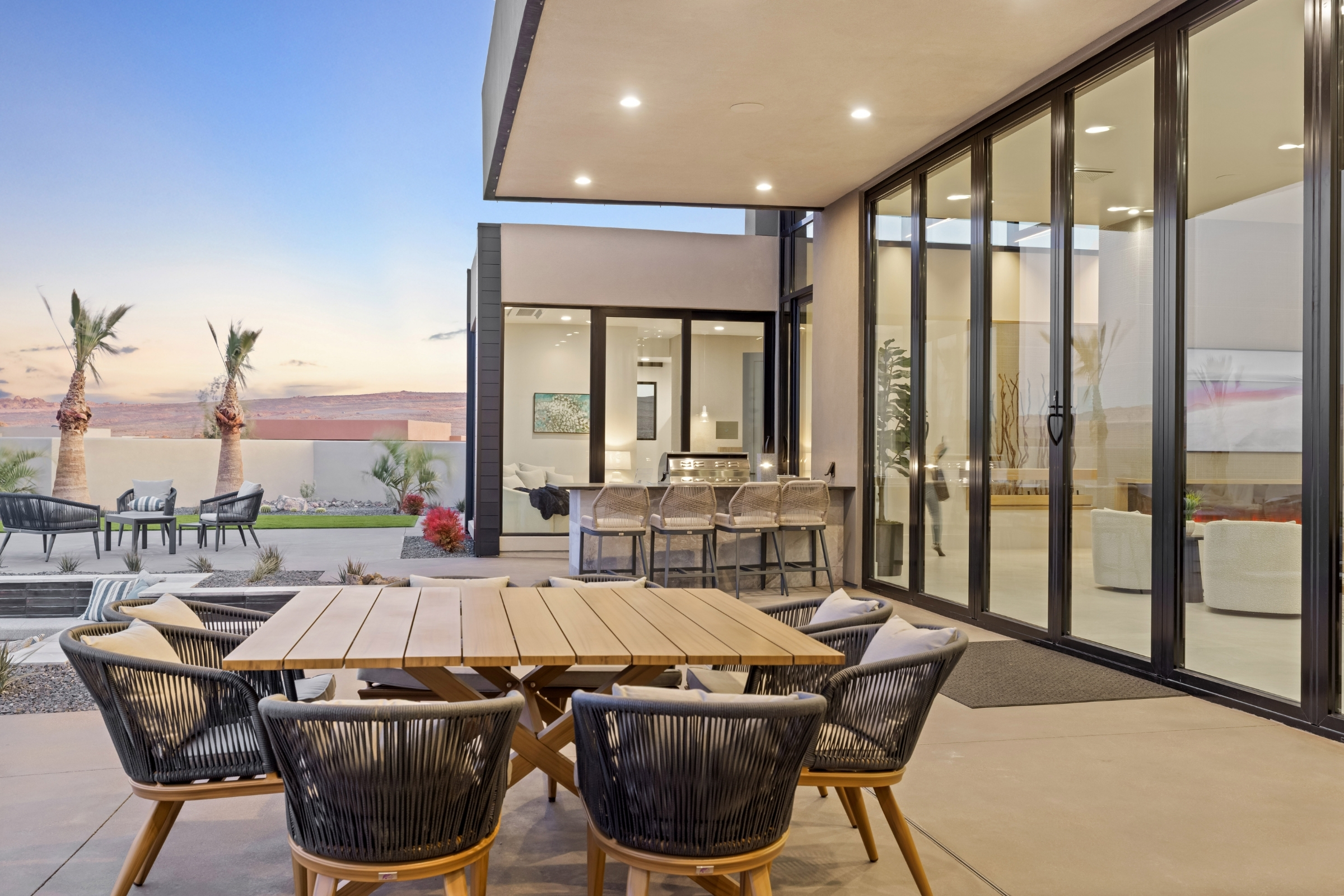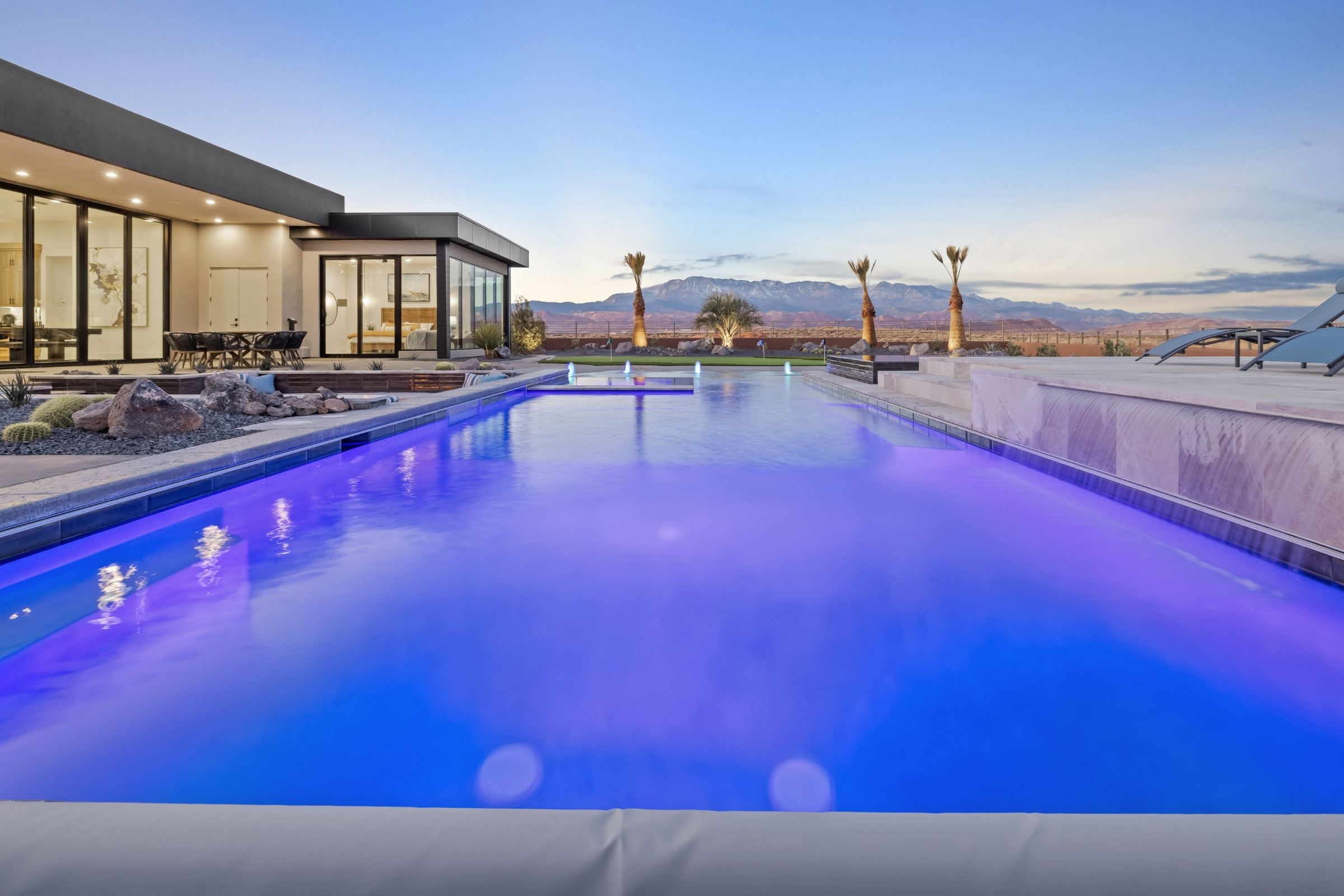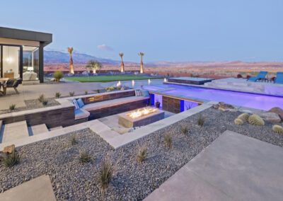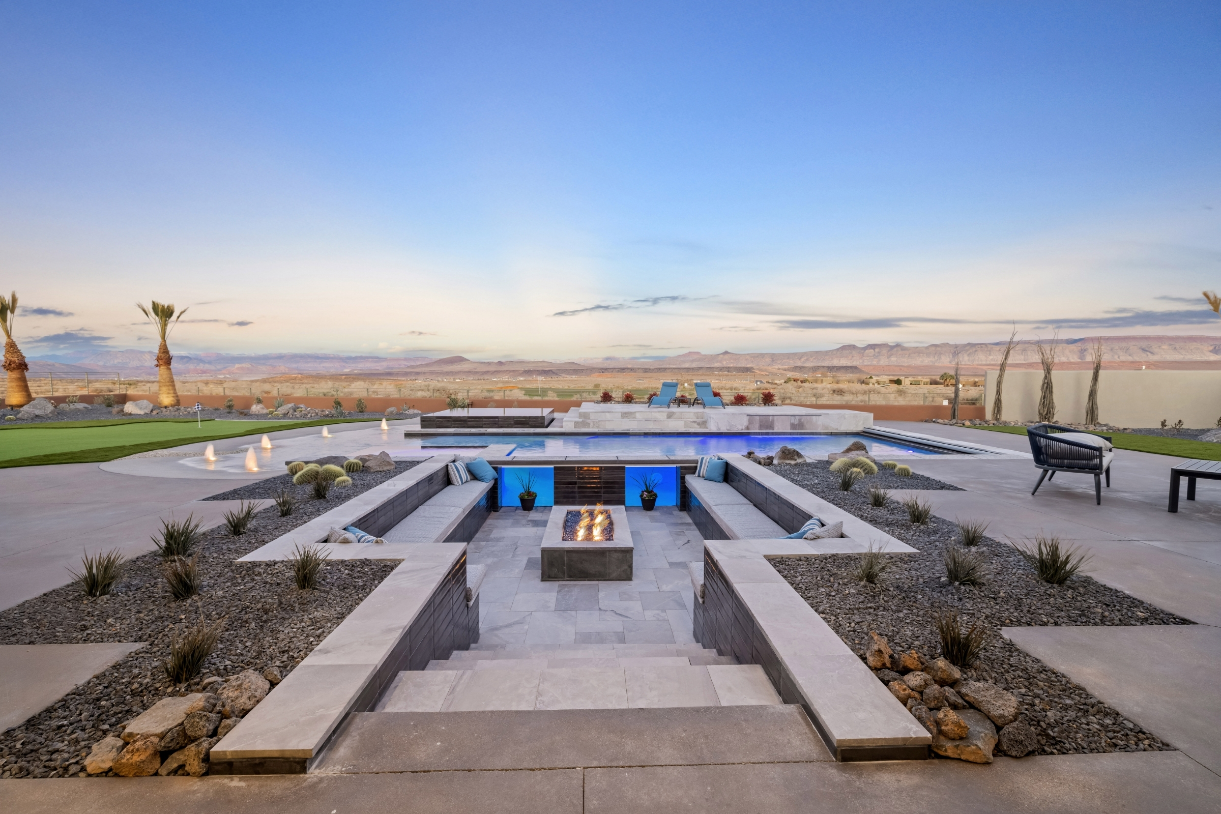 Set along the pristine fairways of the Sand Hollow Golf Course, The Solithria is a modern sanctuary designed to embody stillness, balance, and refined living. This one-level custom home is an intentional study in calm—where architecture, landscape, and light work together to create a deeply peaceful living experience.
