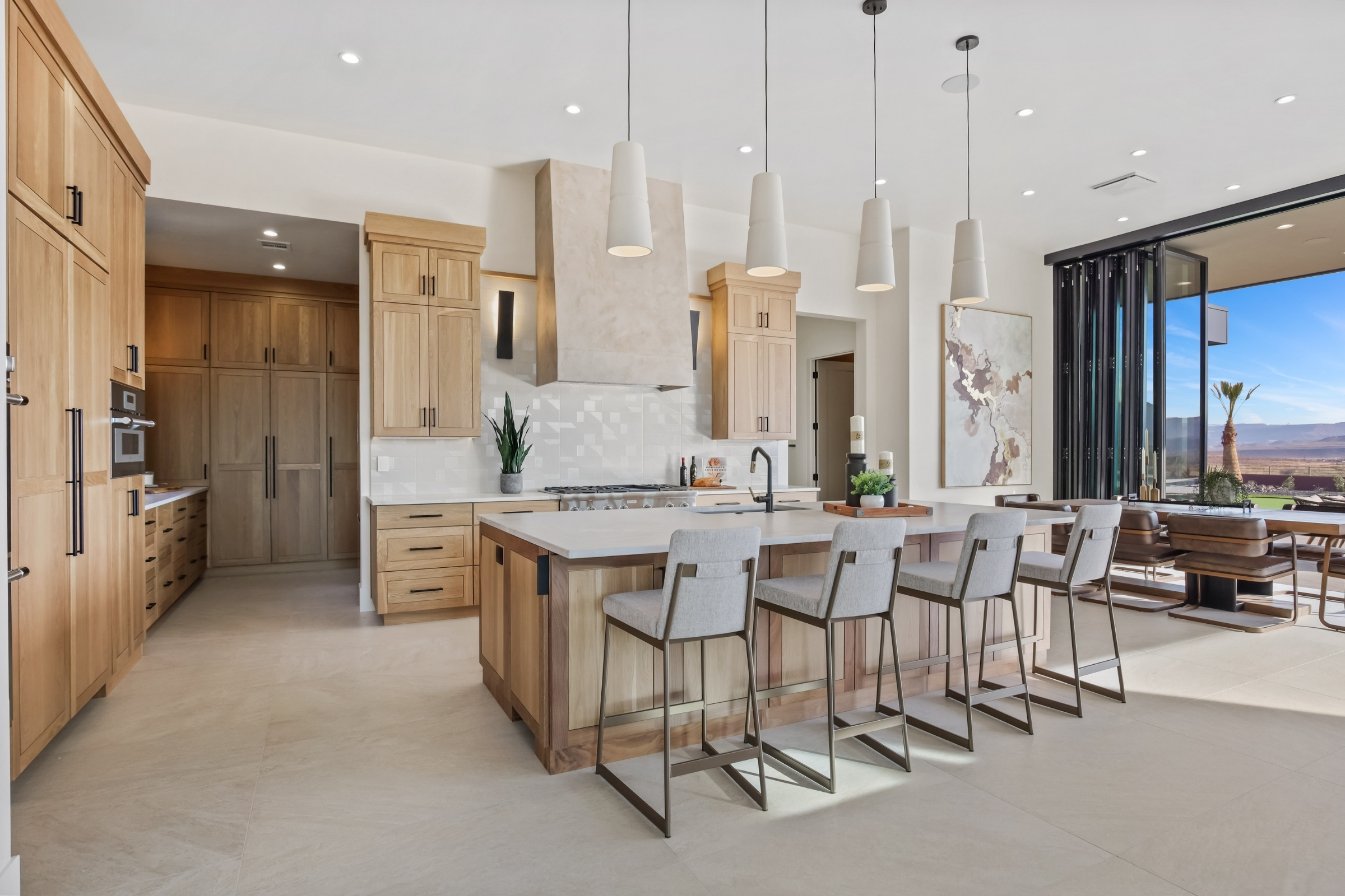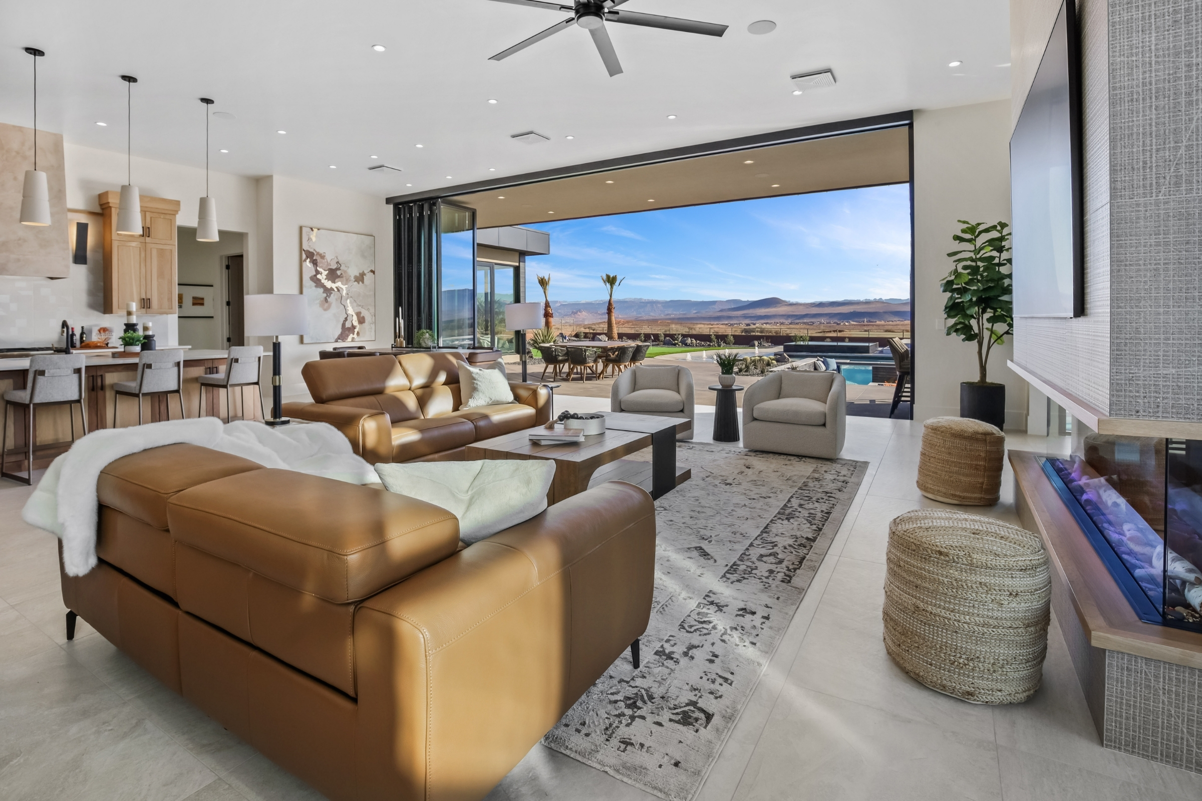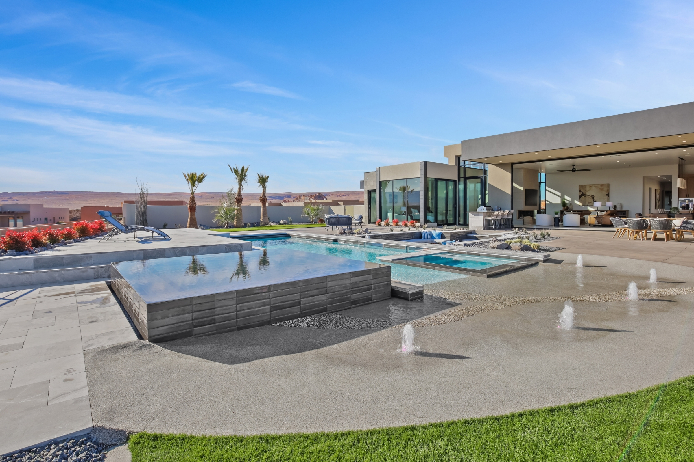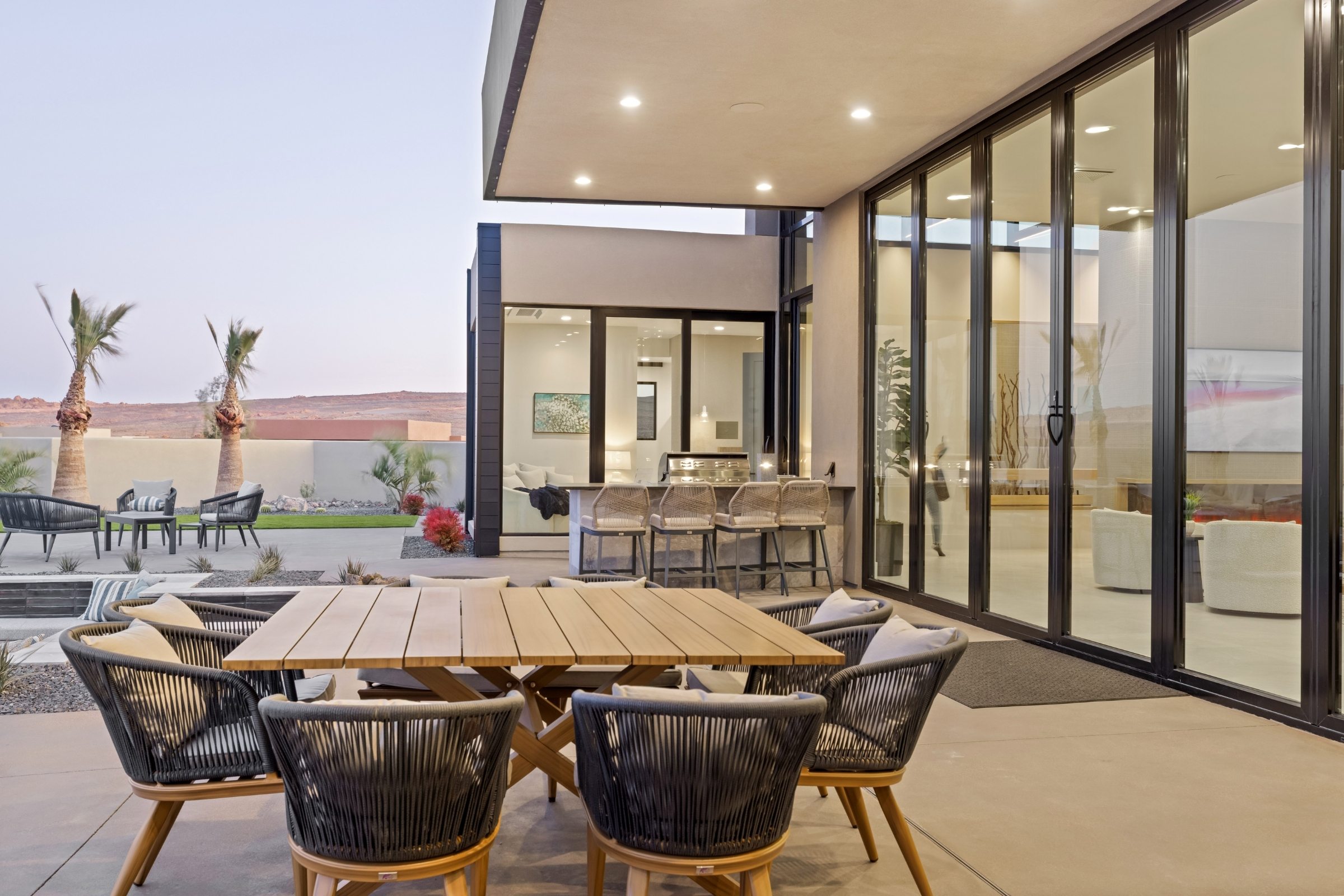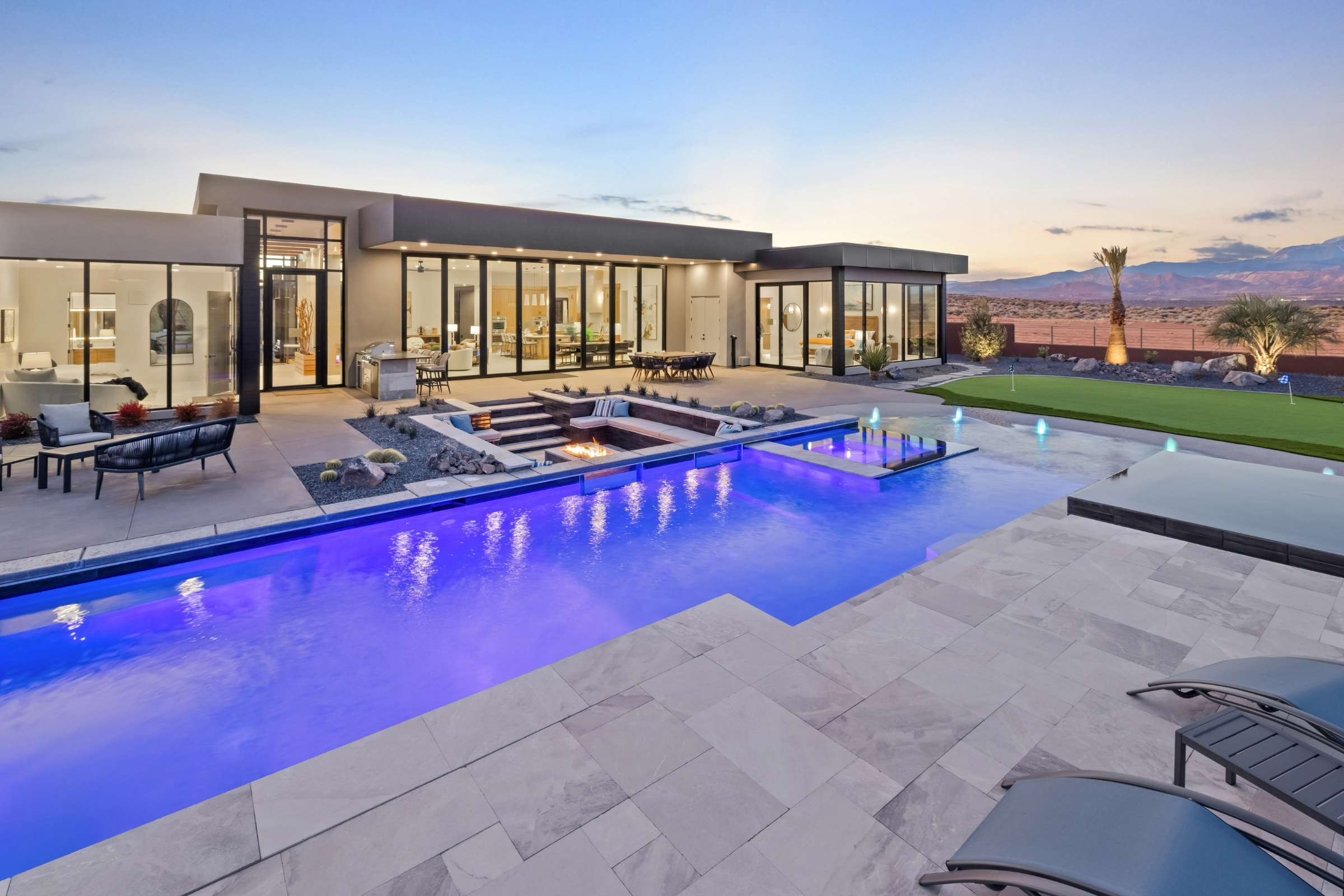 Set along the pristine fairways of the Sand Hollow Golf Course, The Solithria is a modern sanctuary designed to embody stillness, balance, and refined living. This one-level custom home is an intentional study in calm—where architecture, landscape, and light work together to create a deeply peaceful living experience.