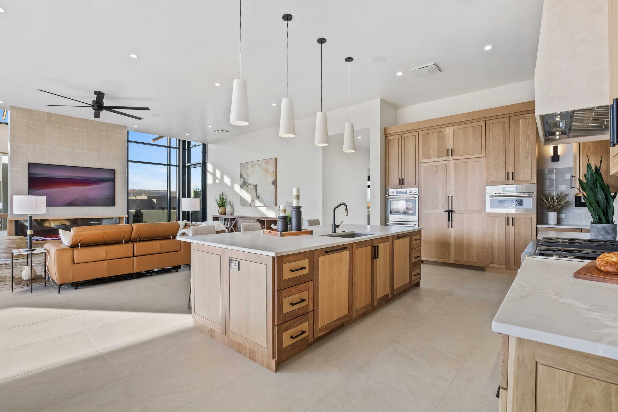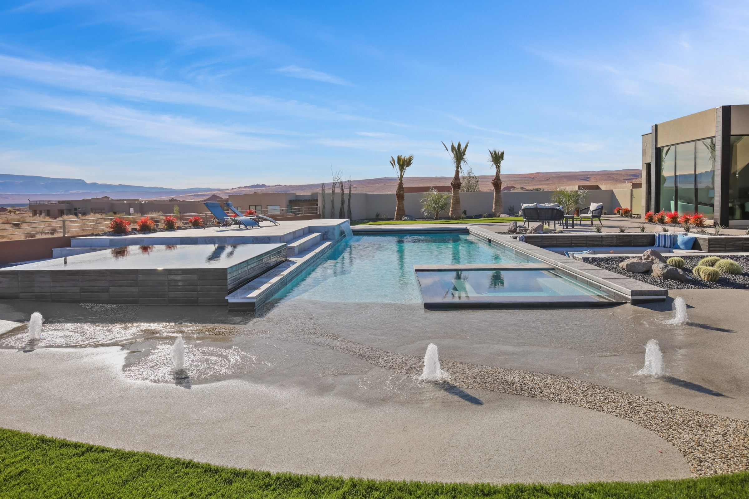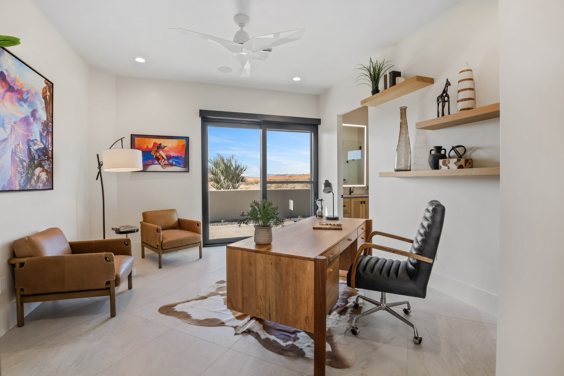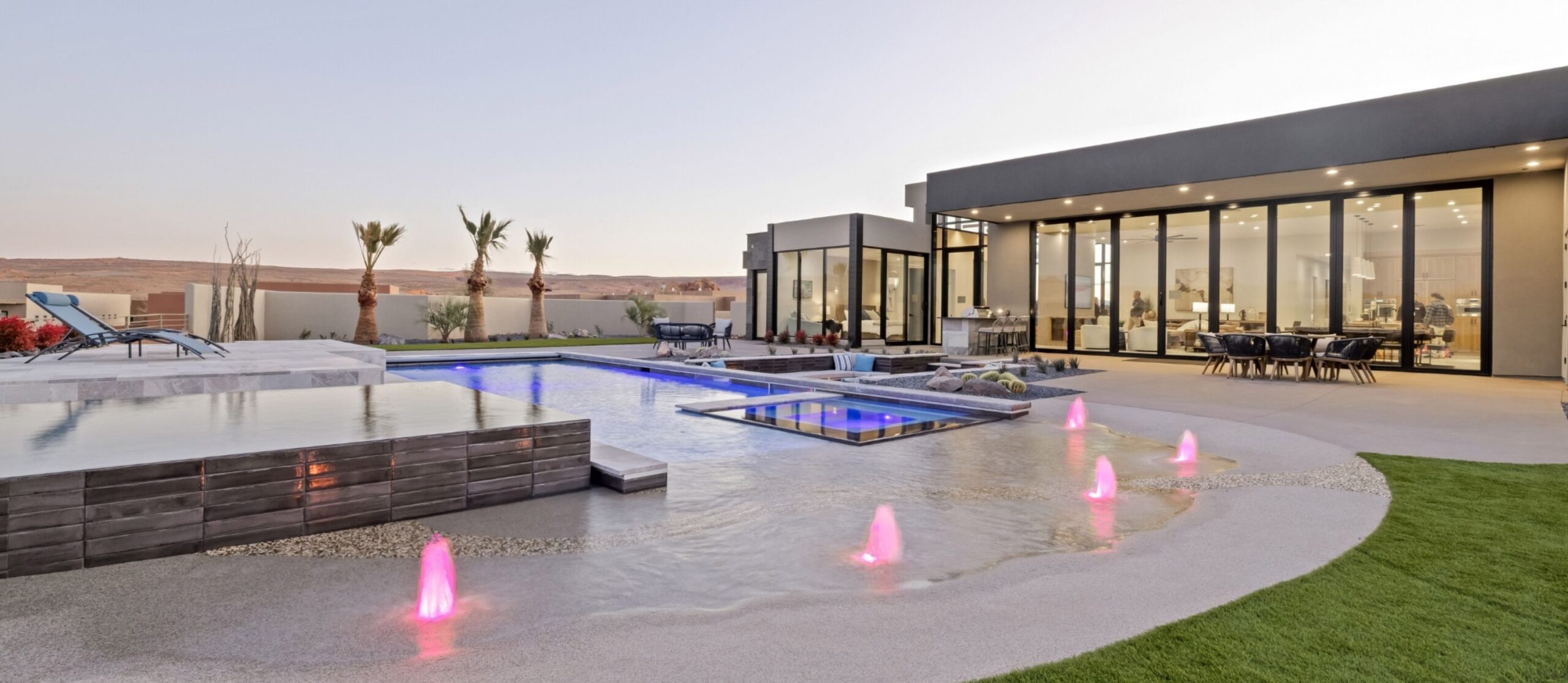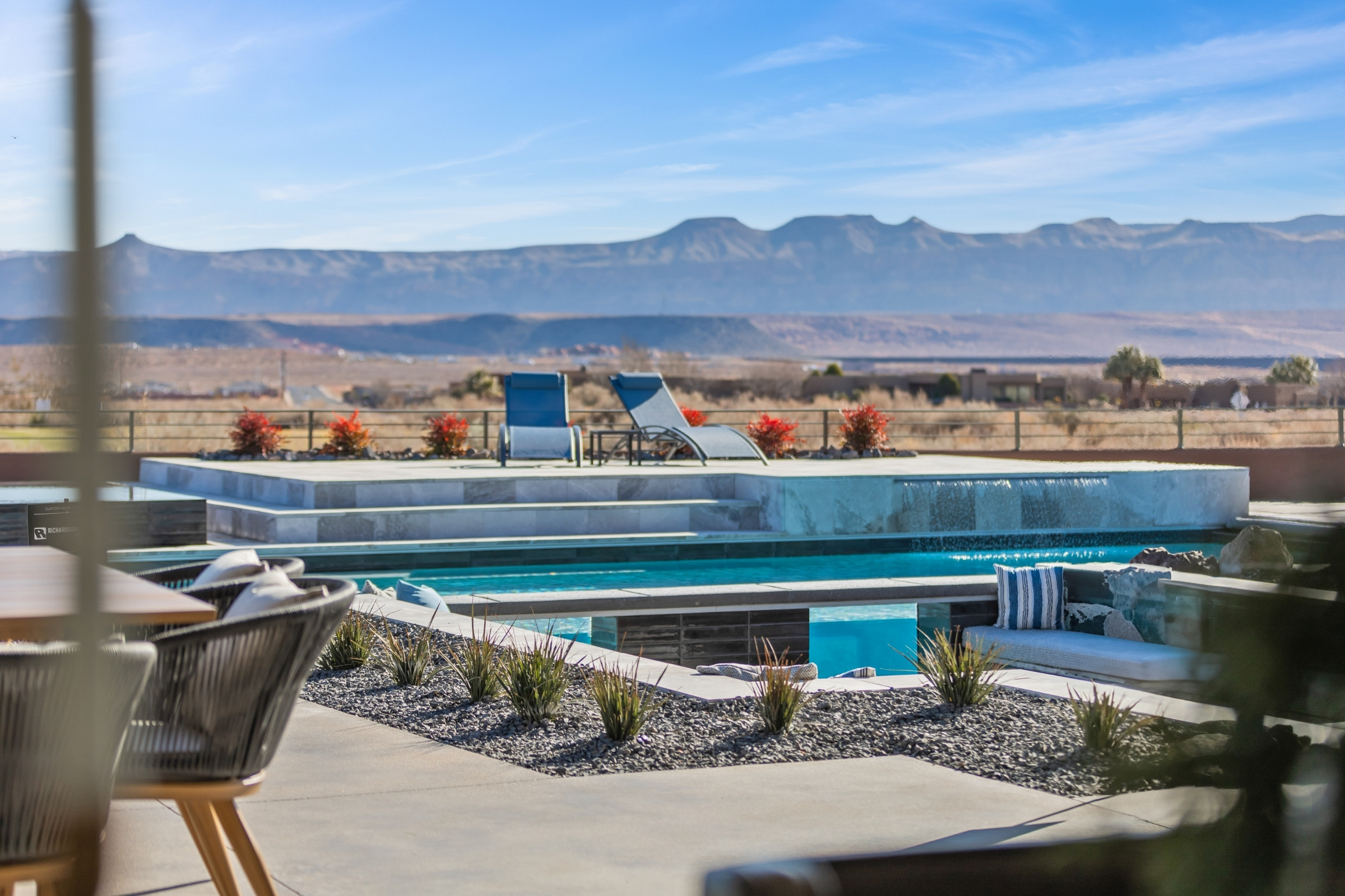 Set along the pristine fairways of the Sand Hollow Golf Course, The Solithria is a modern sanctuary designed to embody stillness, balance, and refined living. This one-level custom home is an intentional study in calm—where architecture, landscape, and light work together to create a deeply peaceful living experience.