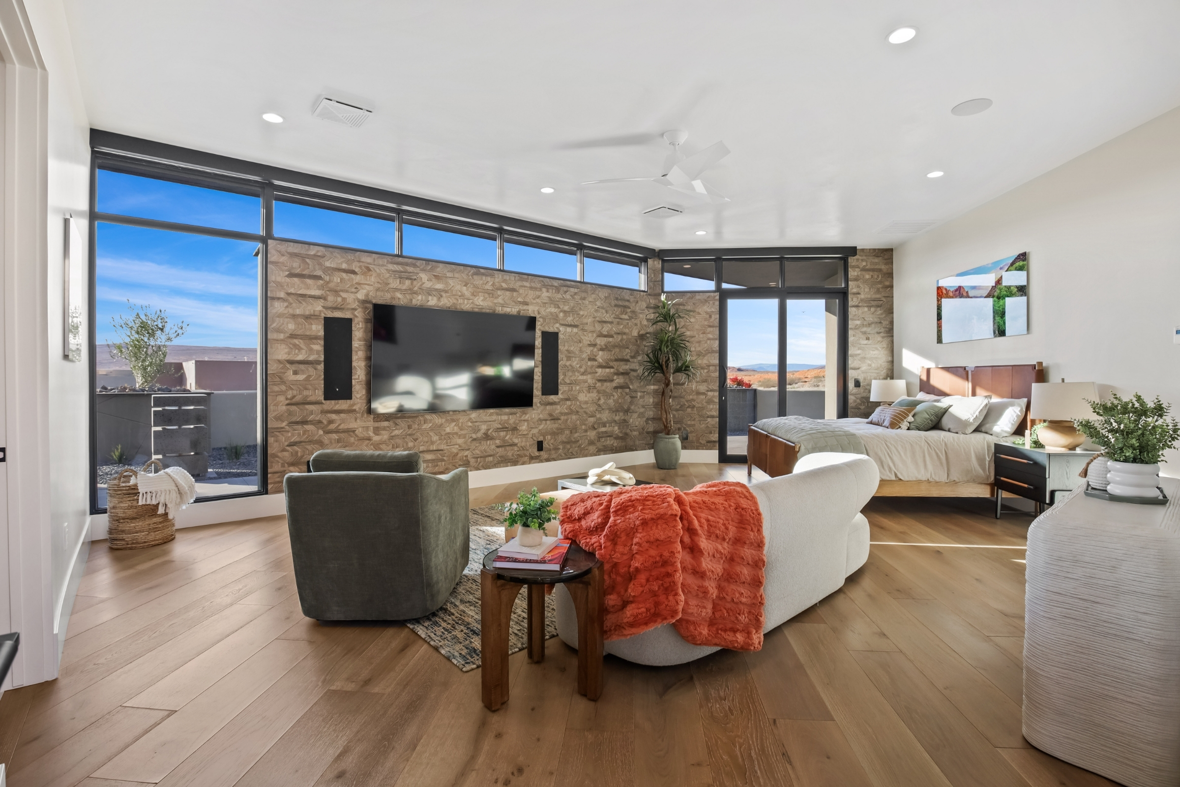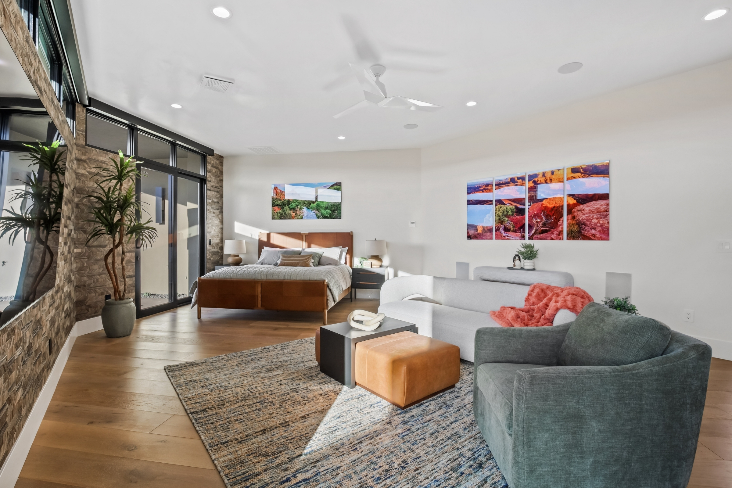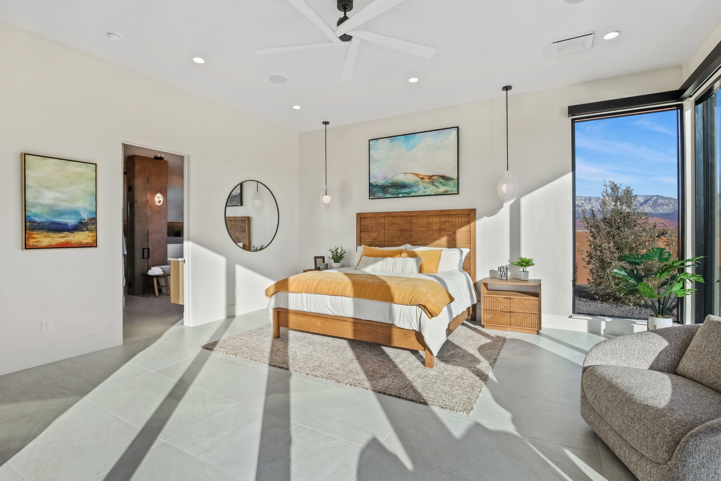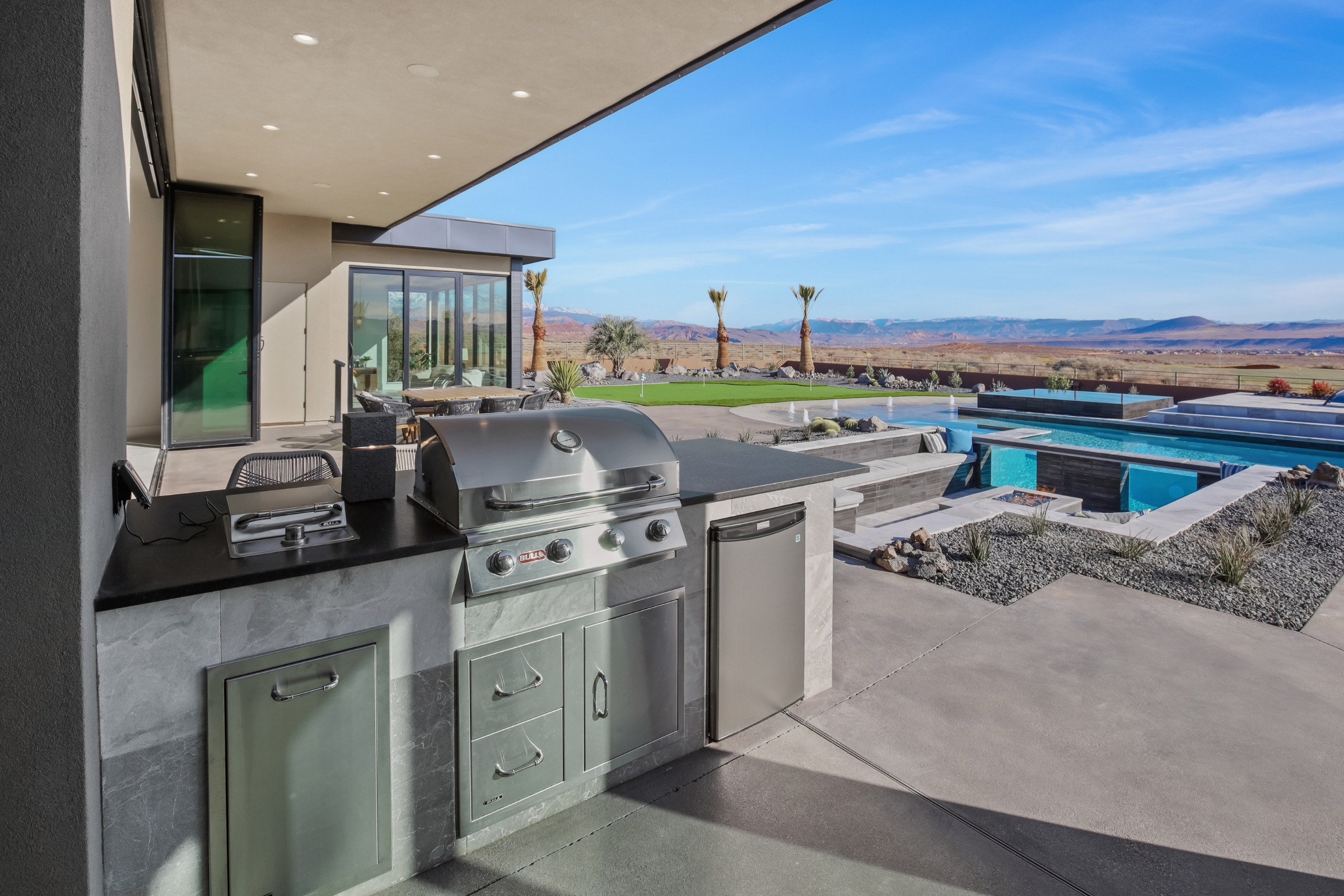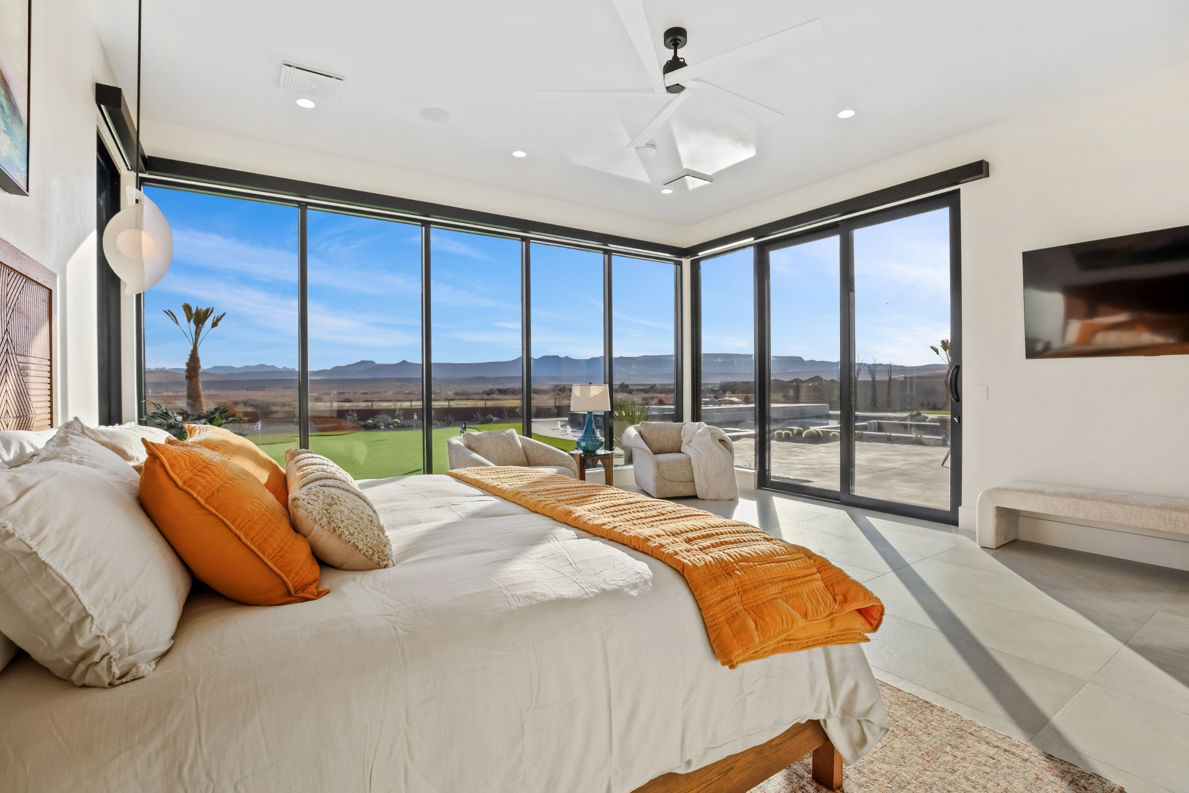 Set along the pristine fairways of the Sand Hollow Golf Course, The Solithria is a modern sanctuary designed to embody stillness, balance, and refined living. This one-level custom home is an intentional study in calm—where architecture, landscape, and light work together to create a deeply peaceful living experience.