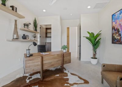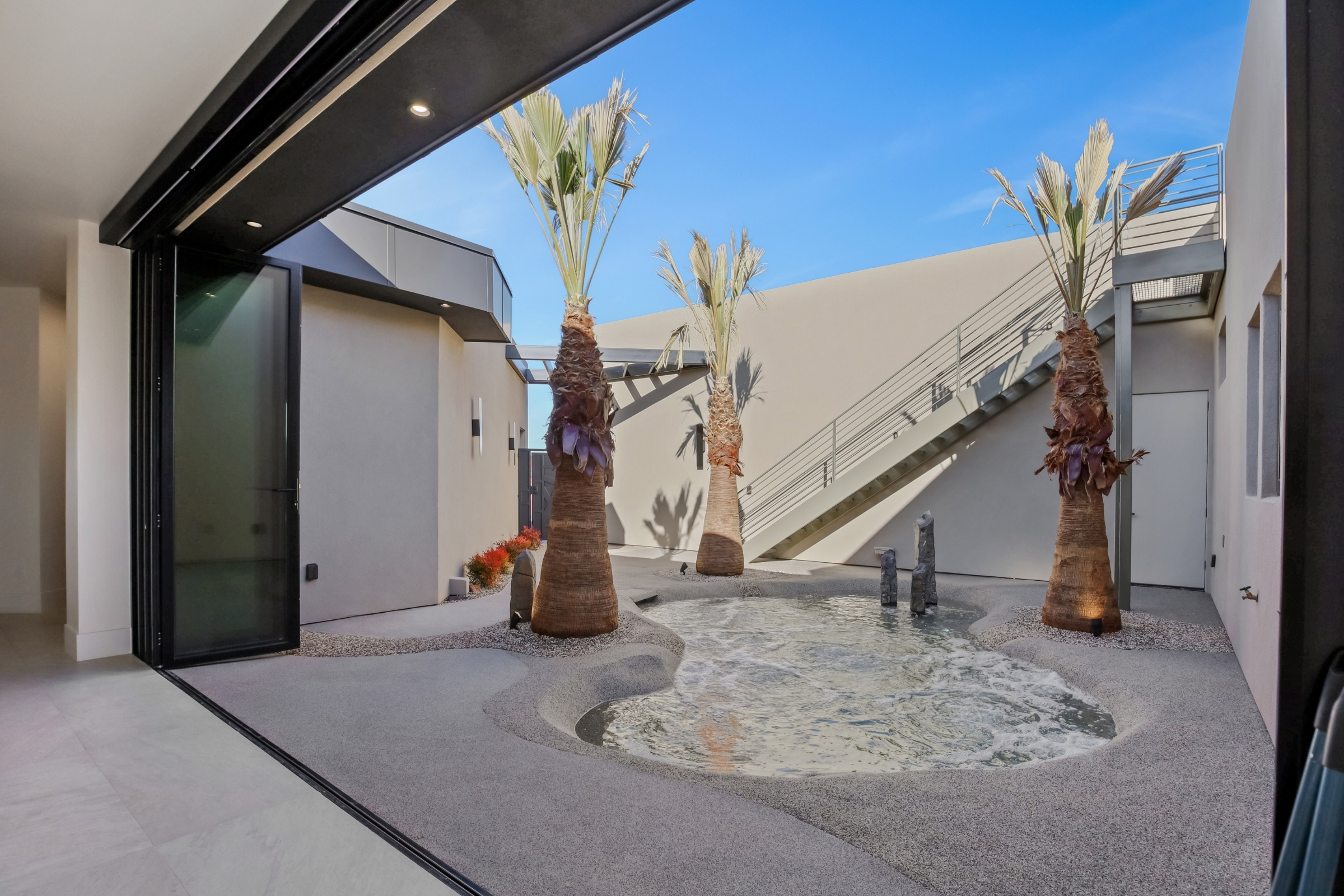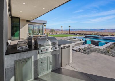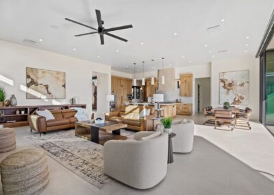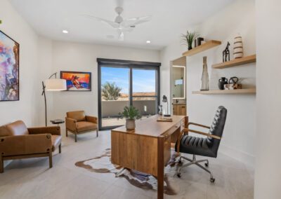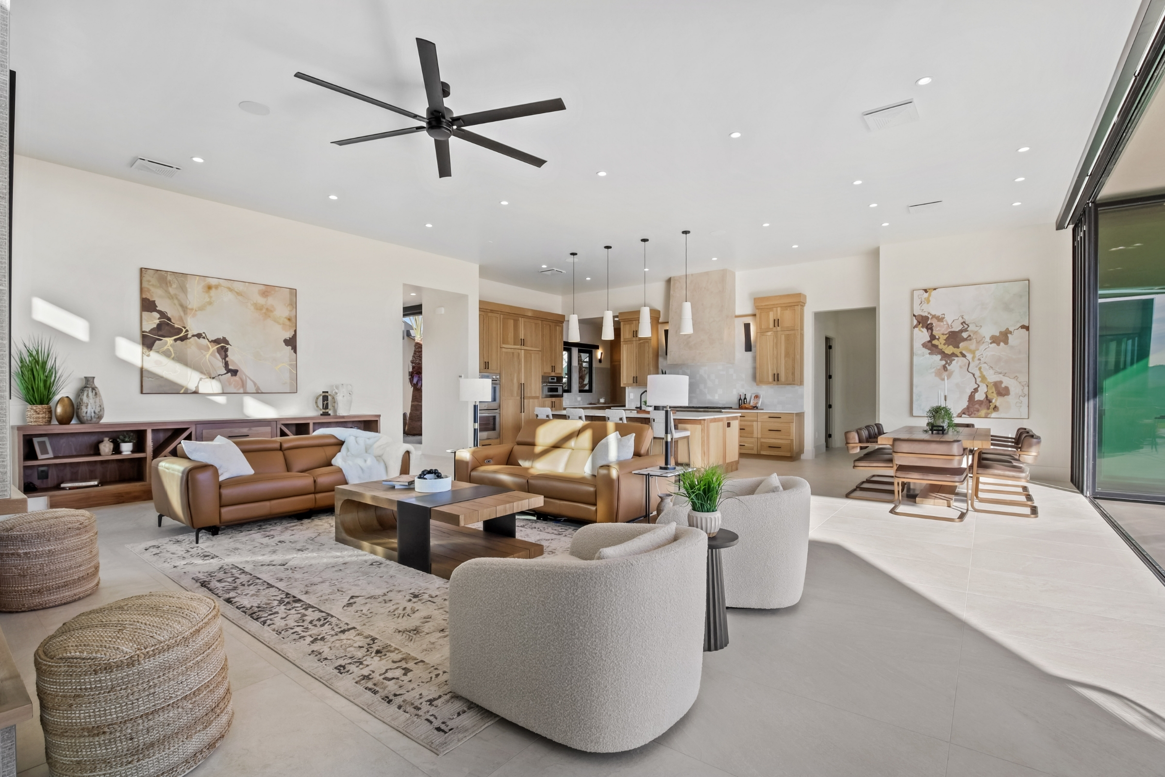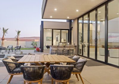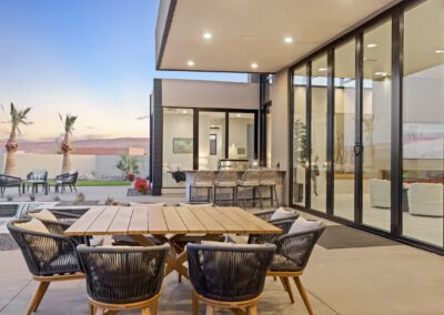 Outdoor living is equally intentional. Covered patios and curated exterior spaces invite you to slow down, breathe, and take in the surrounding landscape—whether enjoying a quiet morning or an evening overlooking the fairways as the light shifts across the desert.