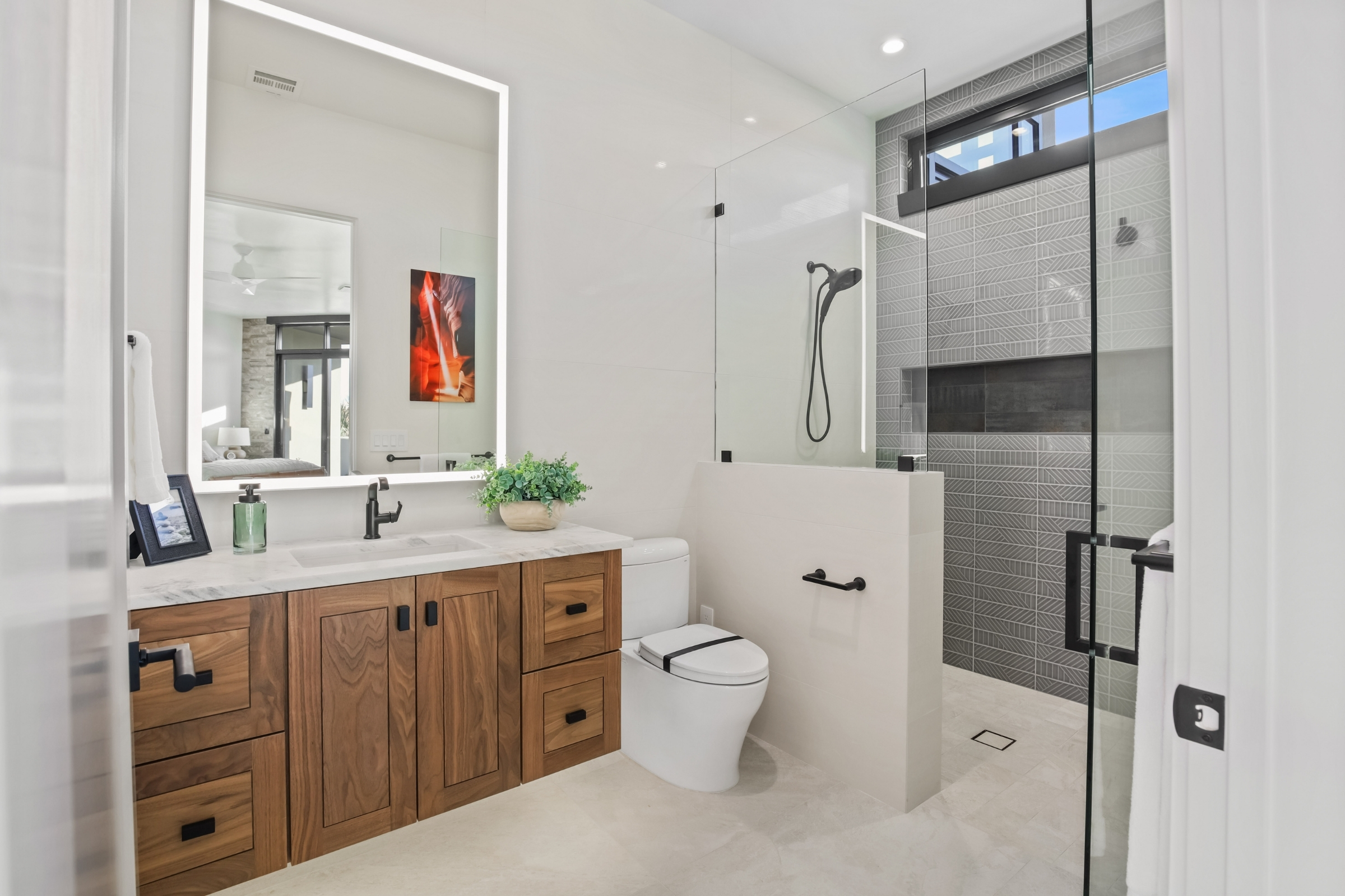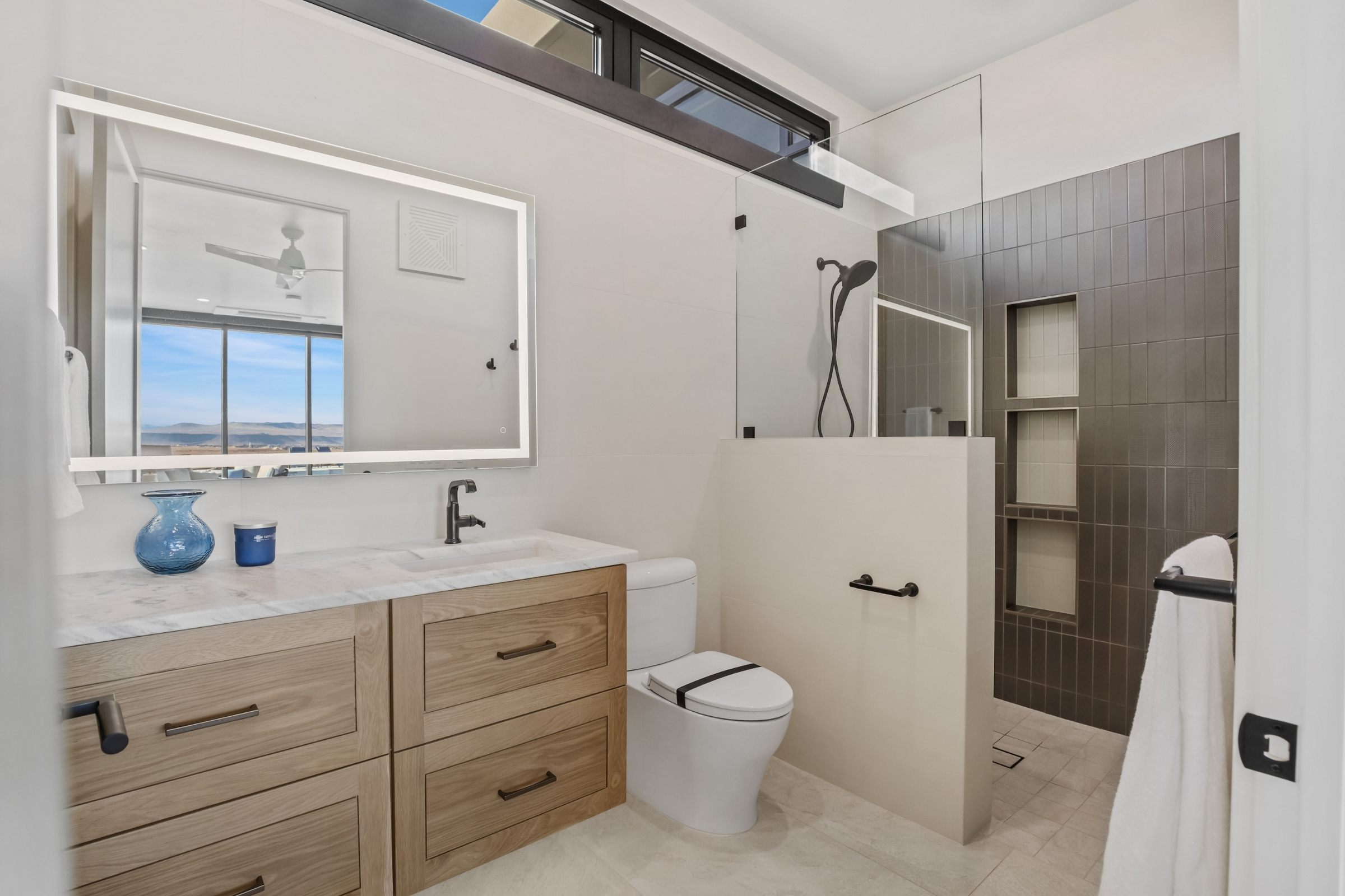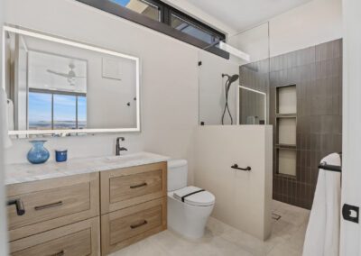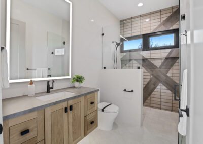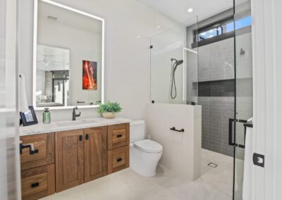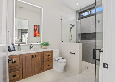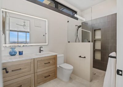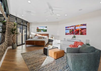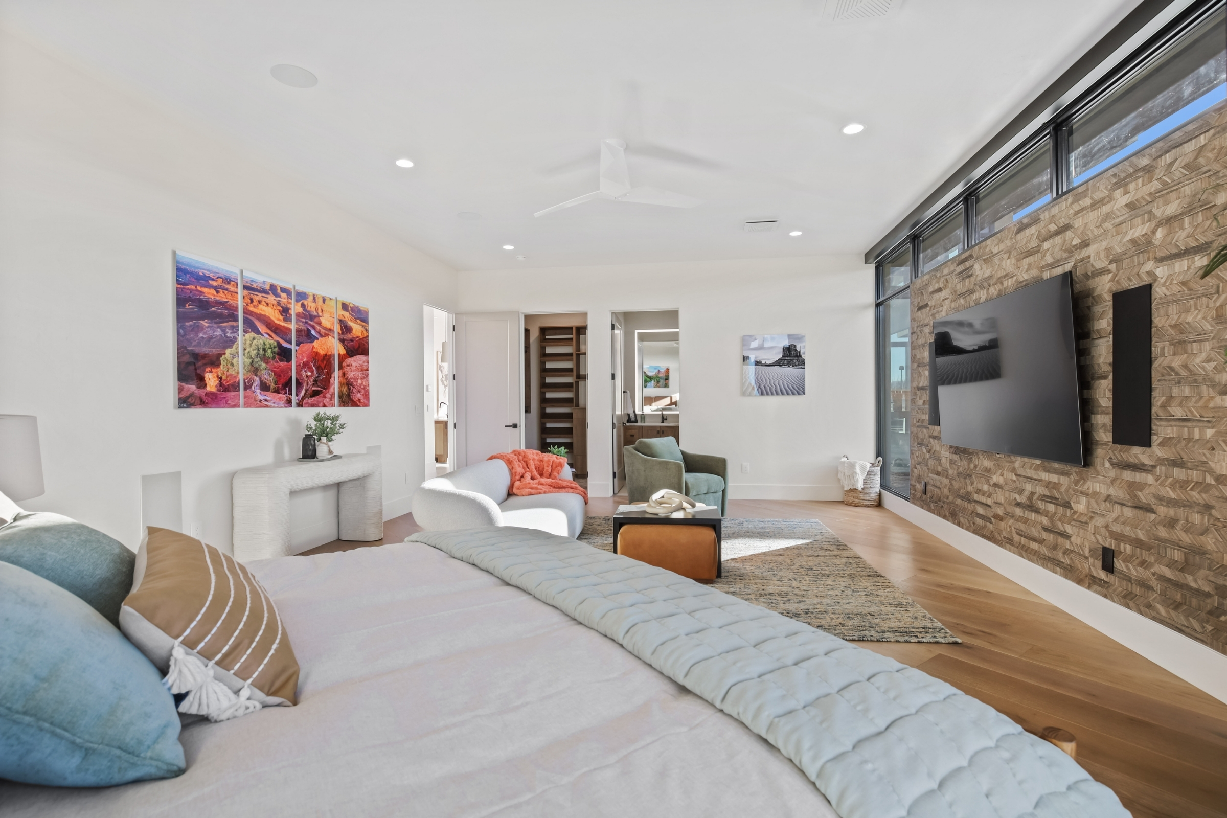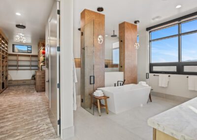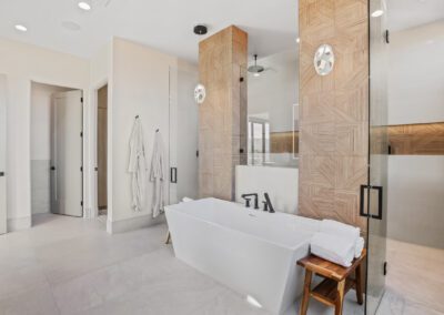 The private living quarters are designed as true retreats—serene, spacious, and removed from the activity of the main living spaces. Bathrooms echo a spa-like sensibility, emphasizing simplicity, texture, and calm. Throughout the home, restraint is the luxury: nothing excessive, nothing overlooked.