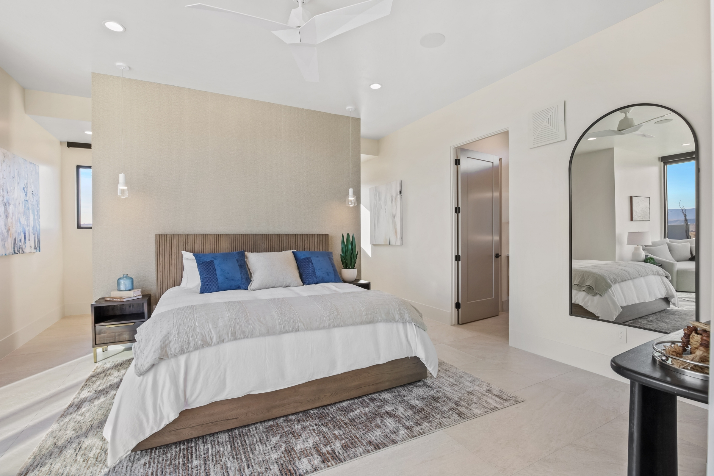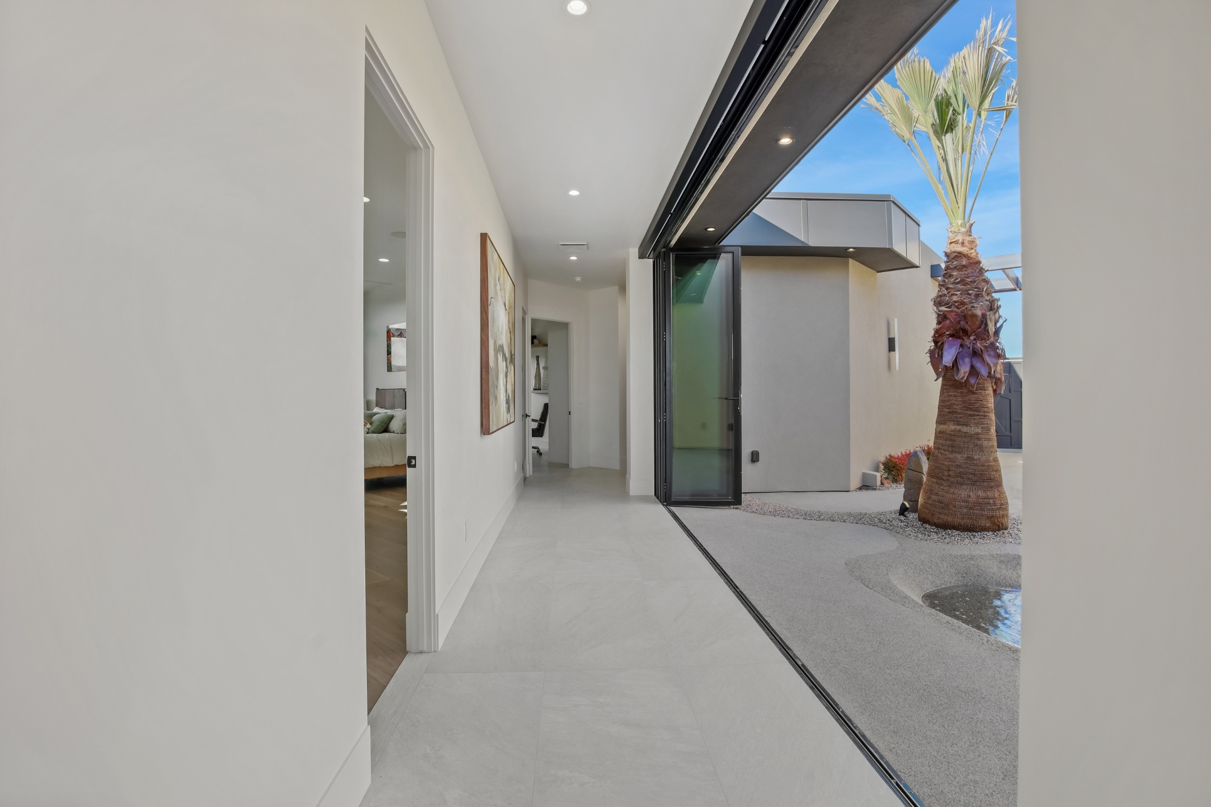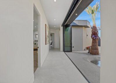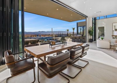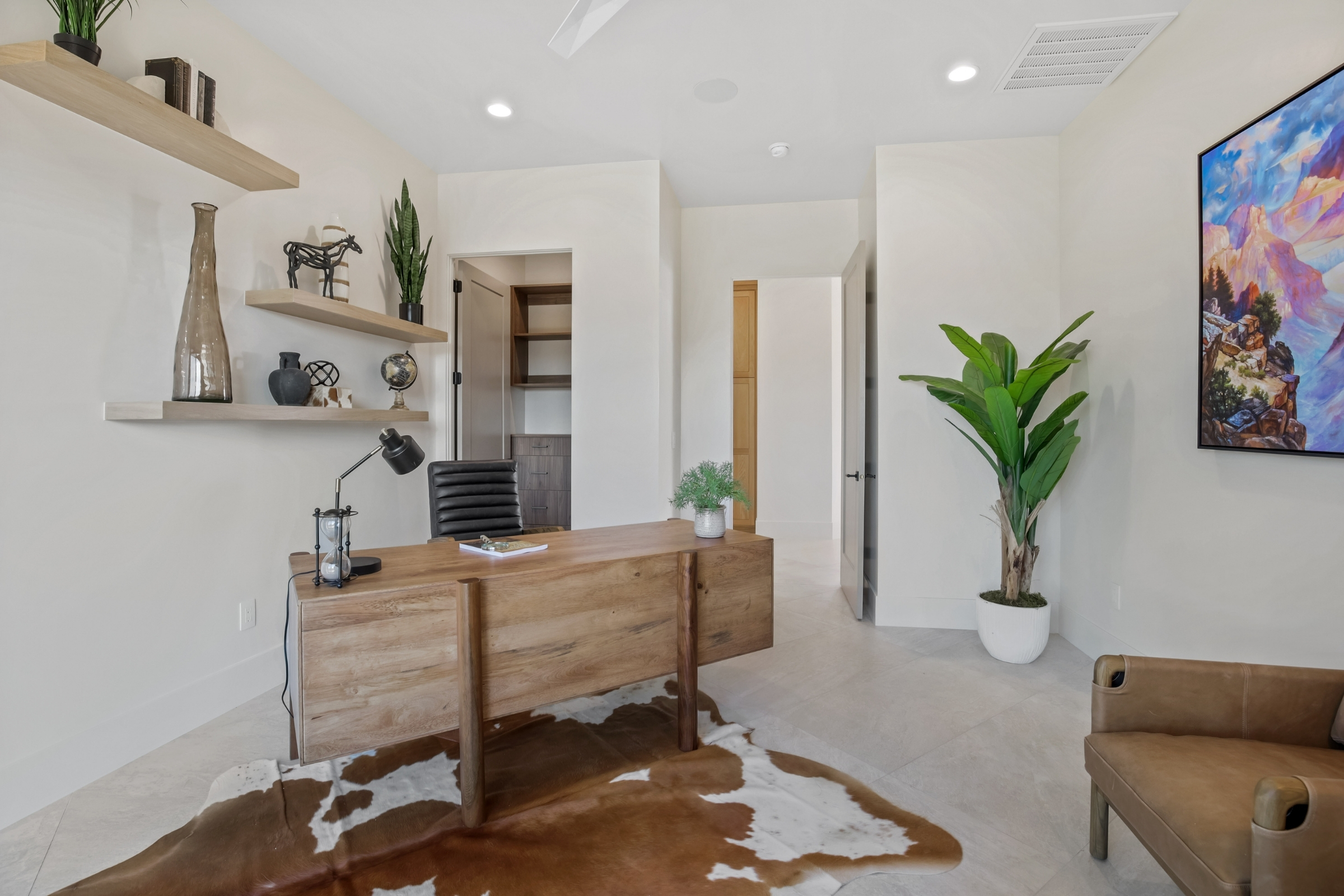 From the moment you enter, the home opens outward. Expansive walls of glass frame uninterrupted golf course and desert views, drawing natural light deep into the interior and blurring the line between indoors and out. The floor plan flows effortlessly, creating a sense of openness without sacrificing intimacy—ideal for both quiet retreat and thoughtful entertaining.