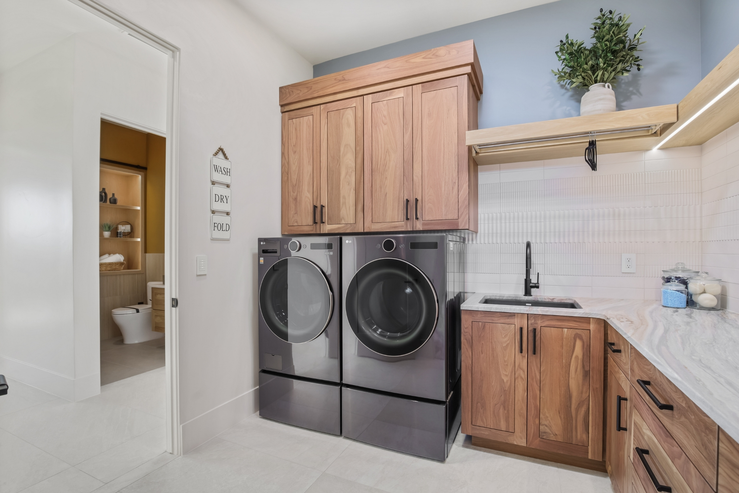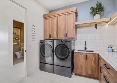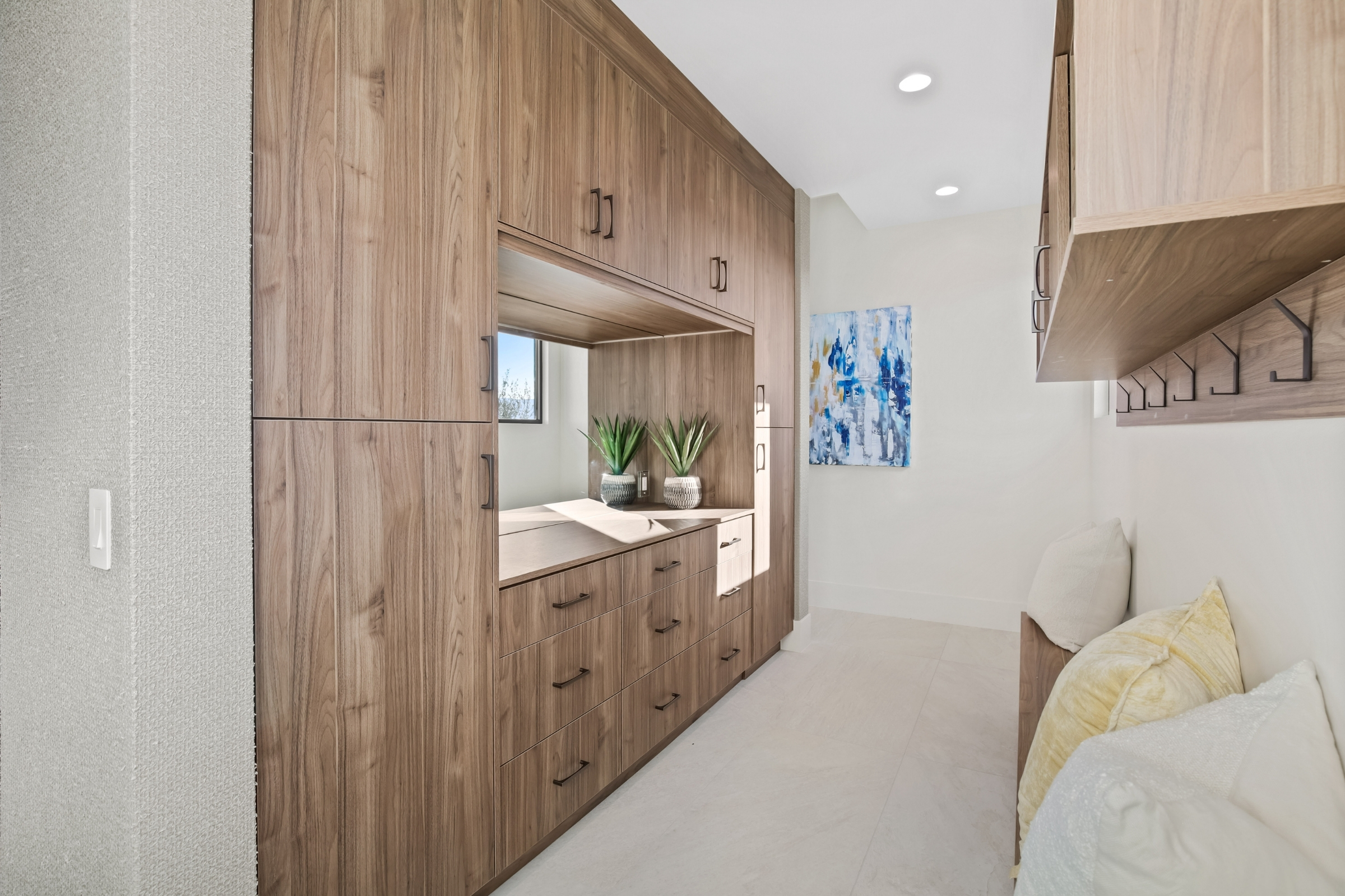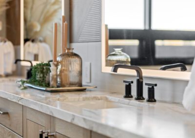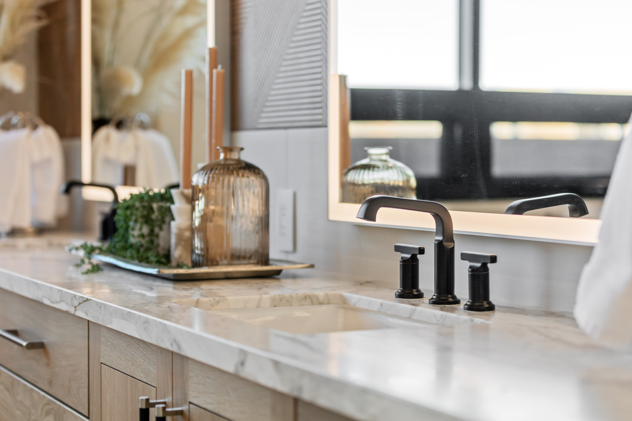 Every space within The Solithria is grounded in purposeful design. Clean lines, elevated materials, and subtle contrasts give the home a timeless presence, while high-end finishes and meticulous craftsmanship reveal themselves in the details. The kitchen and main living areas anchor the home, offering a natural gathering place that feels sophisticated yet entirely livable.